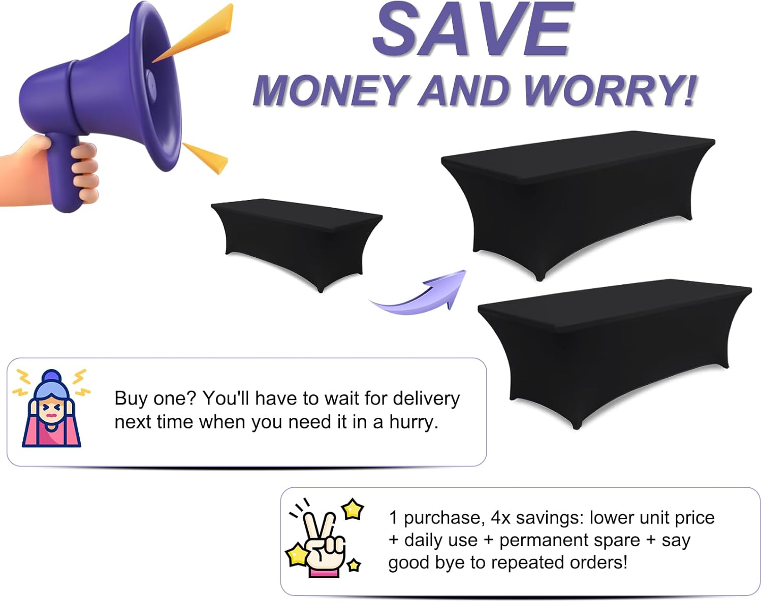 - 3.Which One Should You Choose?: Whether you're using for everyday use in your home or in commercial establishments such as restaurants, hotels and cafes. Our inexpensive rectangle spandex table covers which have the size of 4FT, 5FT, 6FT, 8FT and multicolor will match your table and decor perfectly. Table covers in multipacks are even more cost effective because after taking into account the cost of packaging and transportation.