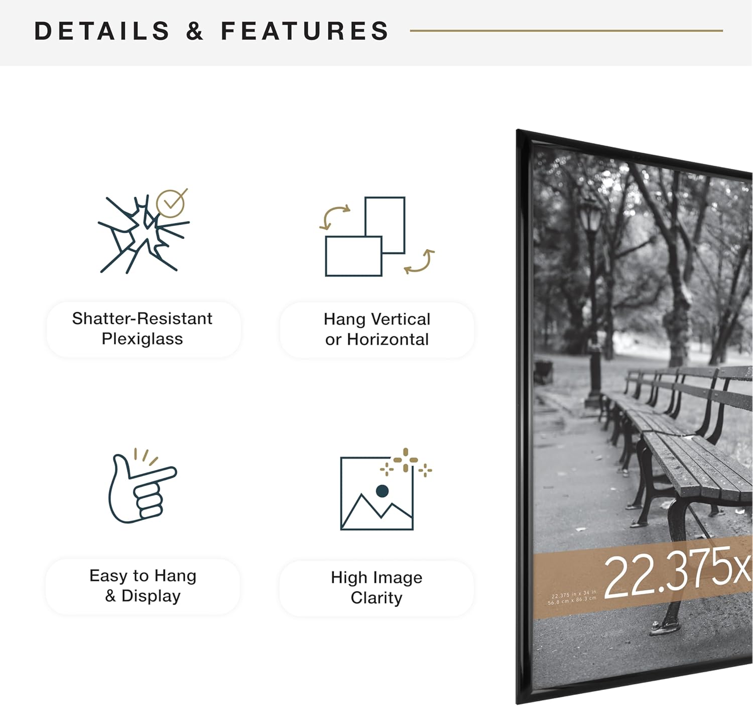 - DIMENSIONS: Wall picture frame measures 23 x 35 inches and holds one 22 x 34 inch poster, puzzle, or picture