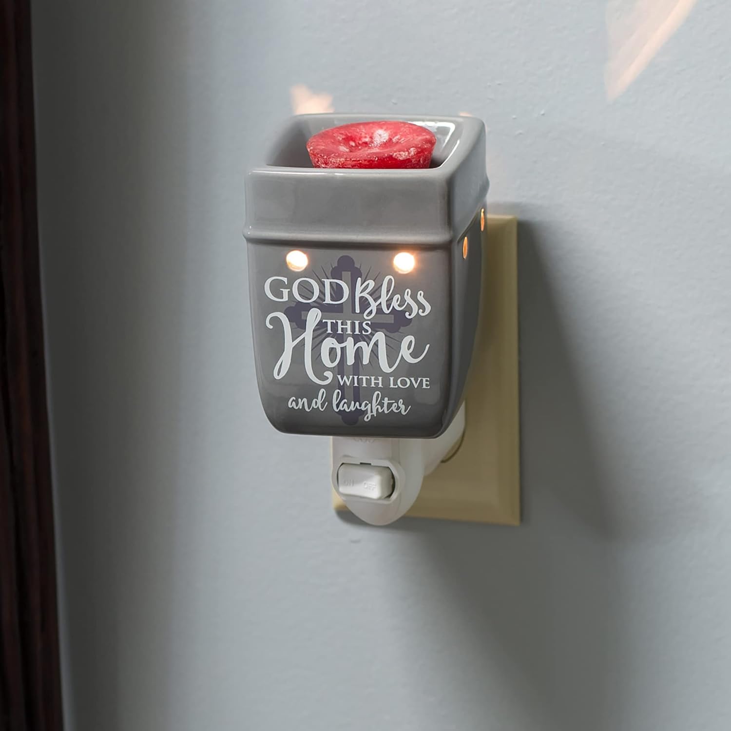 Elanze Designs God Bless This Home with Love Grey Stoneware Electric Plug-in Wax Tart Oil Warmer