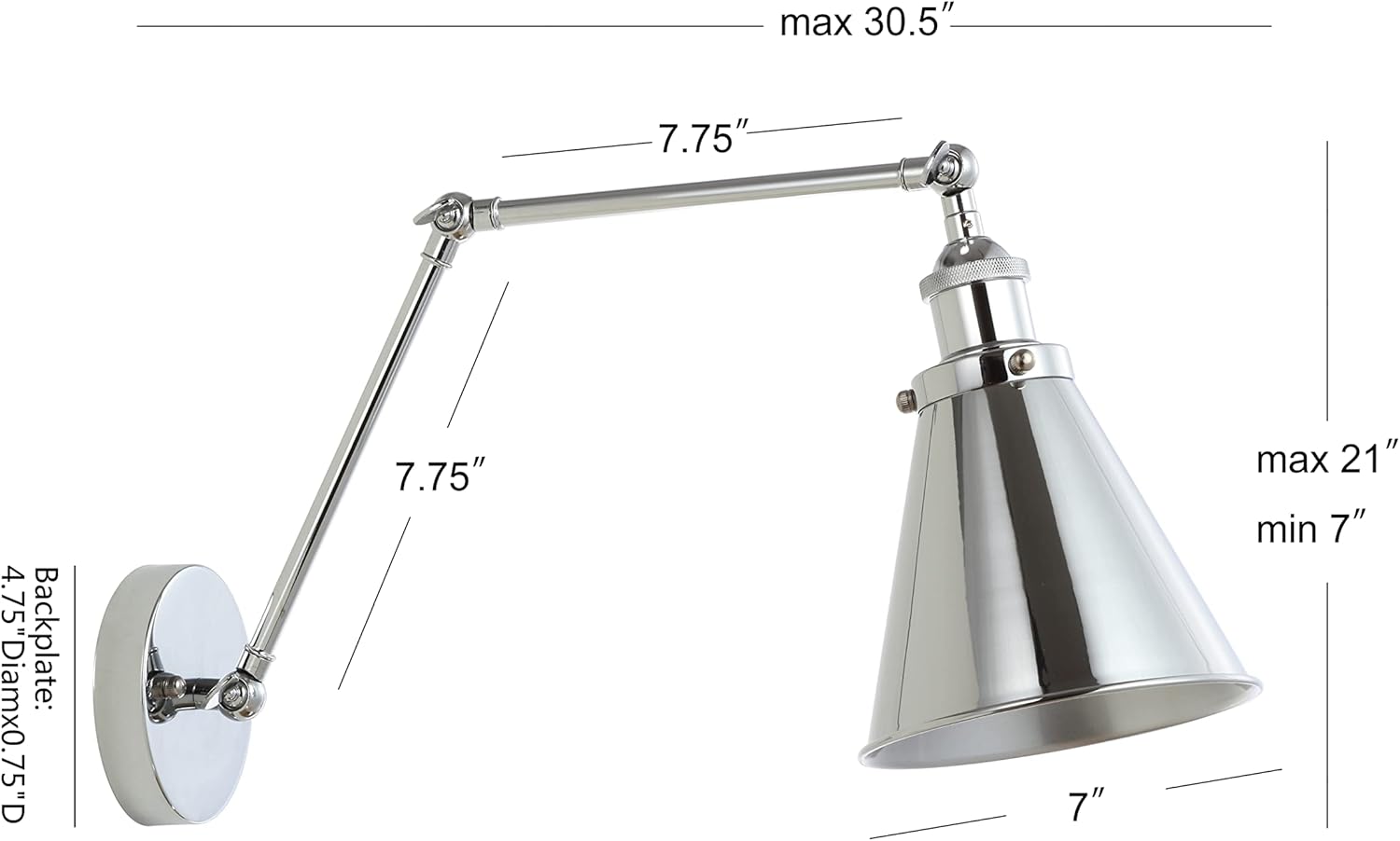 JONATHAN Y JYL7460A Rover 7" Farmhouse Industrial Adjustable Arm Metal LED Wall Sconce Rustic Bohemian 2700K LED 4W Bulb for Entryway Lobby Kitchen Bathroom Bedroom Living Room Hallway, Chrome
