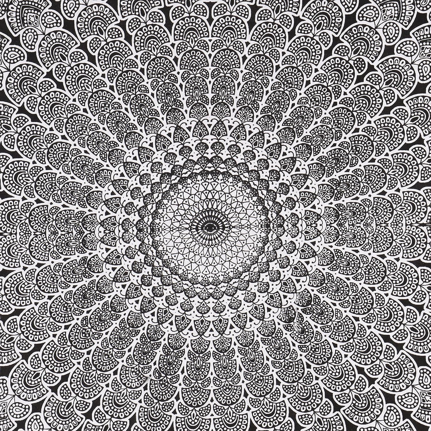 Bless International Handmade Indian hippie Bohemian Psychedelic Peacock Mandala Wall hanging College Dorm Beach Throws Table Cloth Bedding Tapestry (Black White, King(88x104Inches)(225x265Cms))