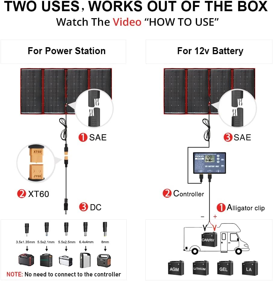 DOKIO 300W Portable Foldable Solar Panel Kit (21x40in, 17lb), with Separate Controller and Dual USB, Monocrystalline Charger for 12V Batteries, Power Stations, RV Camping Emergency Use