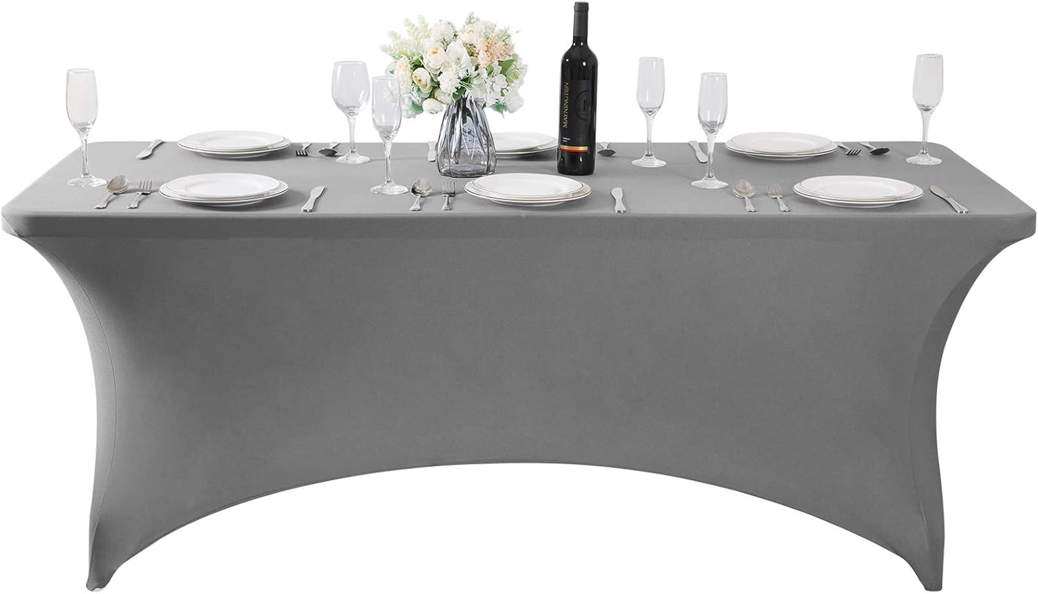Spandex Table Cover for 6Ft or 4fT or 8ft Table Universal Fitted Stretch Tablecloth for Party, Banquet, Wedding and Events-Gray