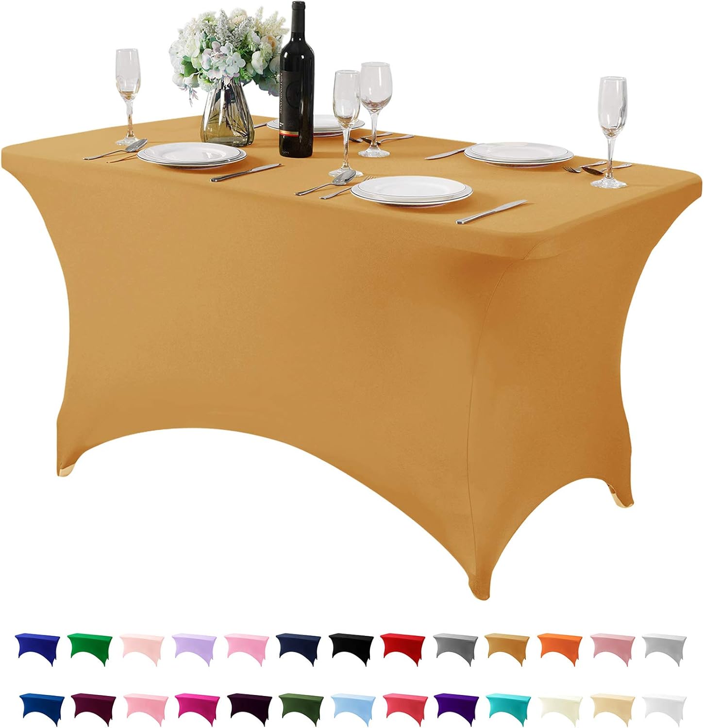 Spandex Table Cover for 4FT Table Universal Fitted Stretch Tablecloth for Party, Banquet, Wedding and Events-Gold