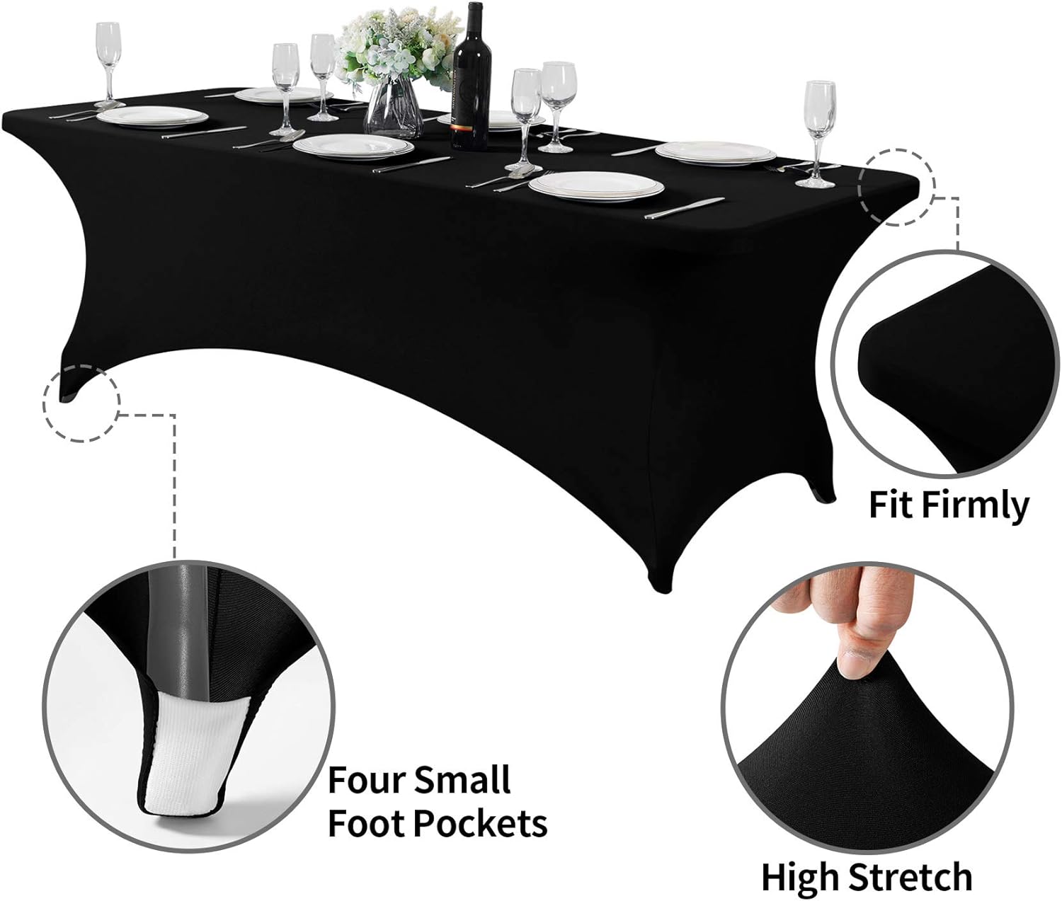 - Easy to use: Easy to set up with four-way stretch spandex material and four pockets for legs are designed for keeping the tablecloth securely in place to fit your table better.