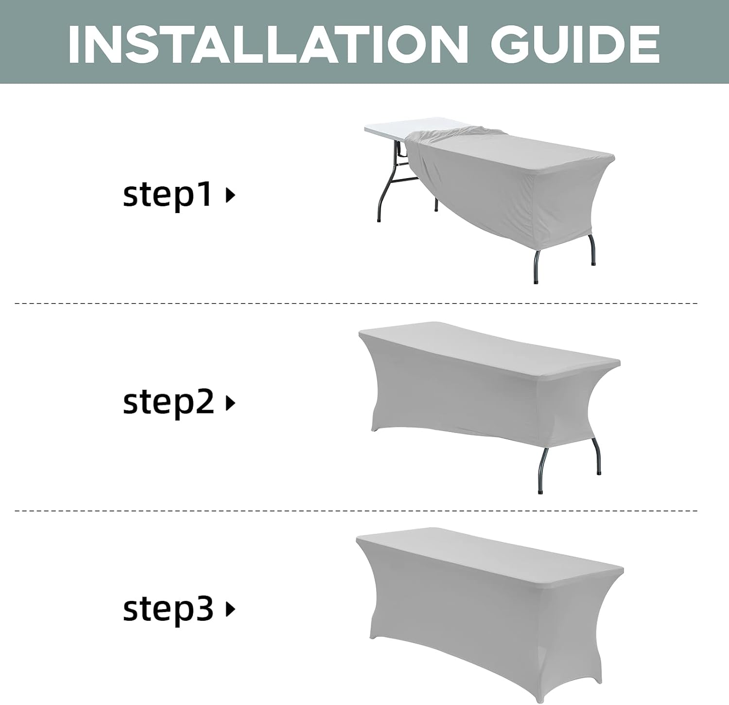 - [Easy To Set Up]: Our table cover is easy for you to set up,just wrap around your table, put 4 table legs into Elastic leg pockets,and ensuring that every part of the rectangular table is covered and spandex table cloth cover is displayed uniformly;It can be used for both indoors and outdoors