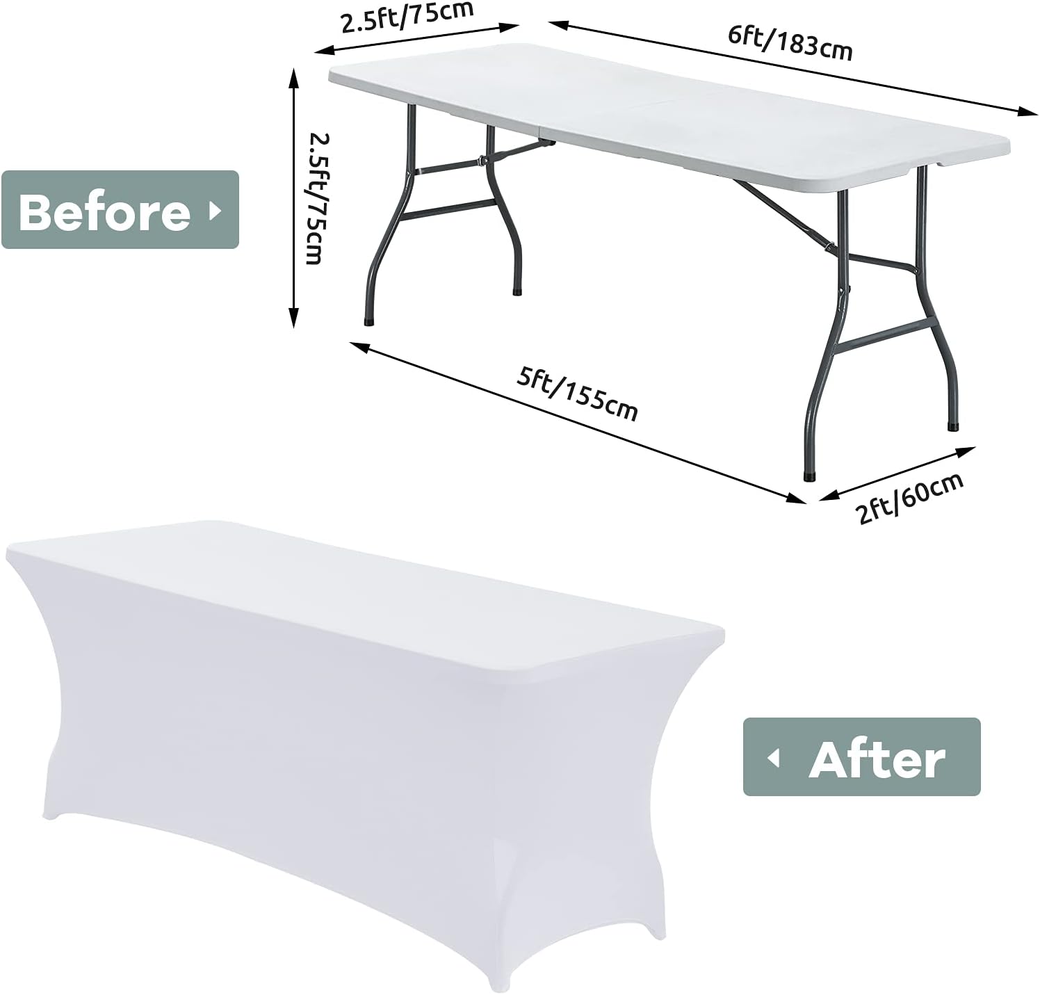 - [Easy To Set Up]: Our table cover is easy for you to set up,just wrap around your table, put 4 table legs into Elastic leg pockets,and ensuring that every part of the rectangular table is covered and spandex table cloth cover is displayed uniformly;It can be used for both indoors and outdoors