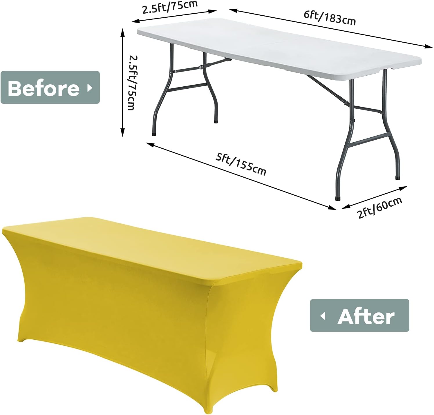 CWK 6FT Waterproof Stretch Spandex Table Cover for Rectangular Tables - Elastic Fitted Tablecloth for Folding Tables,Wrinkle Resistant Table Cloth for Parties, Weddings, Banquets & Events (Yellow)