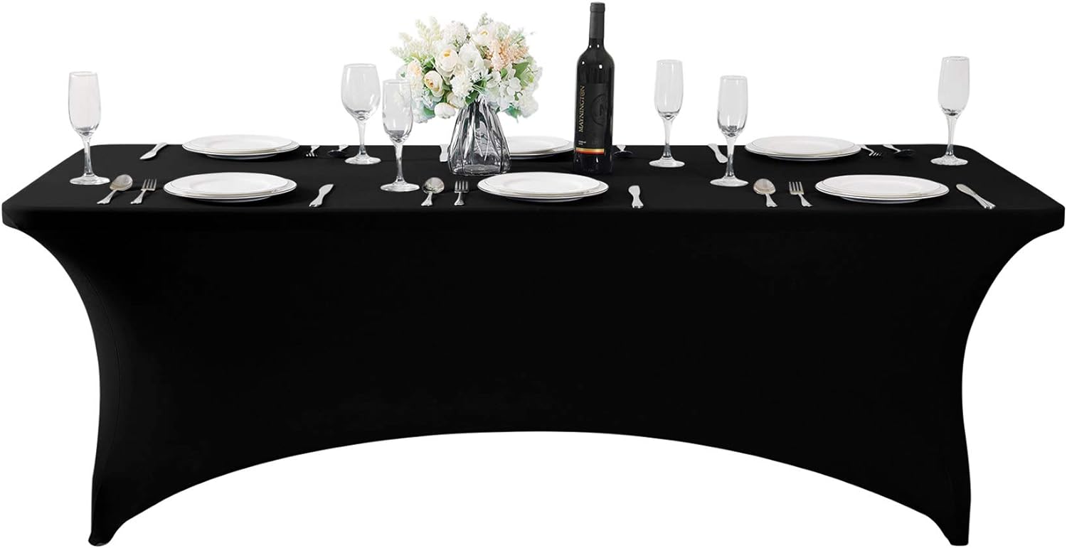 SuperO Waterproof Spandex Table Cover for 8FT Table Universal Fitted Stretch Tablecloth for Party, Banquet, Wedding and Events-Black