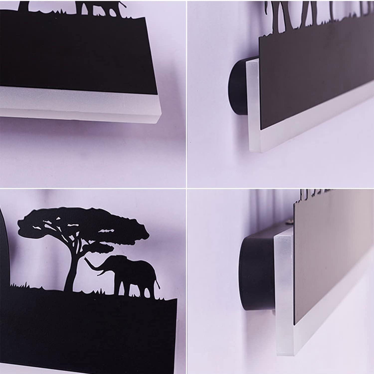 - 【Comfortable color temperature】 This wall sconce is made of iron and acrylic. The visible part is laser engraved with an iron plate. The back uses an LED light strip as a light source. The up light strip uses 3000K warm yellow light and the down light strip uses 6500K cool white light, matched with some animal or character designs, depict a sunrise or sunset scene.