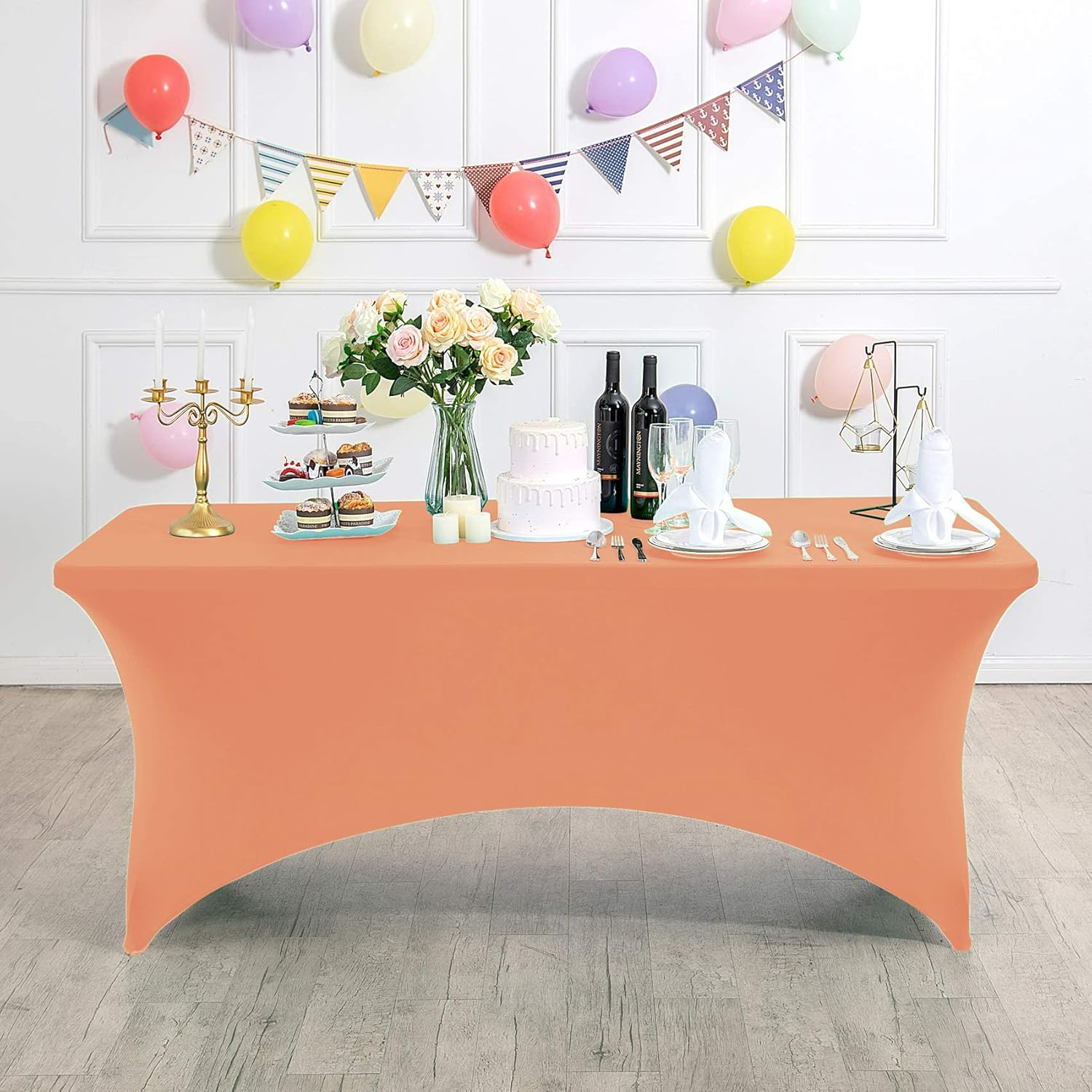 Spandex Table Cover for 8FT or 4ft or 6ft Table Universal Fitted Stretch Tablecloth for Party, Banquet, Wedding and Events-Peach