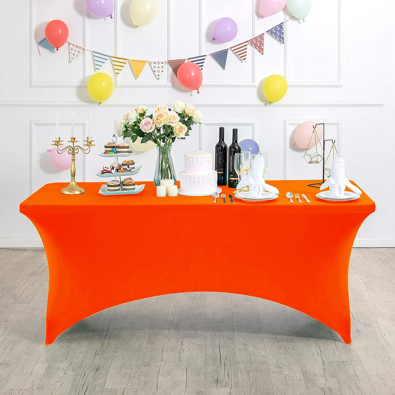 Spandex Table Cover for 4FT Table Universal Fitted Stretch Tablecloth for Party, Banquet, Wedding and Events-Neon Orange