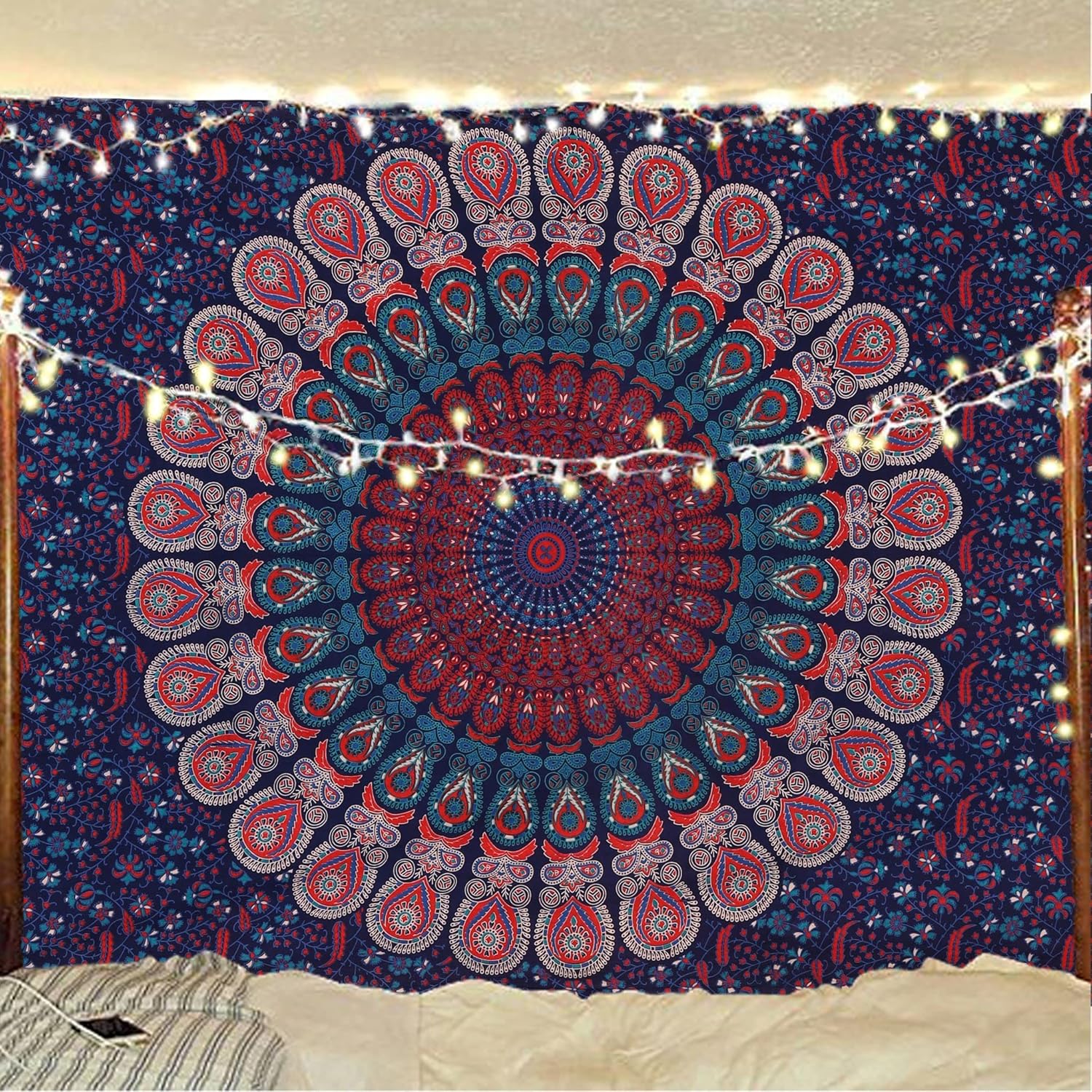 Bless International Handmade Indian hippie Bohemian Psychedelic Peacock Mandala Wall hanging College Dorm Beach Throws Table Cloth Bedding Tapestry (Midnight Blue, Twin(54x72Inches)(140x185cms))