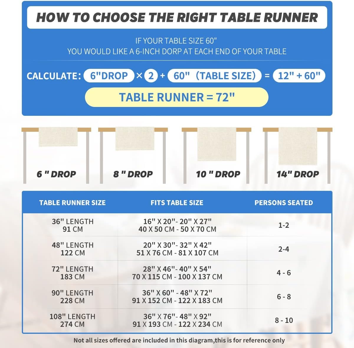 - Fits Table Size : This table runner is 13 x 48 inch, appropriate for a table that can seat 2-4 people, better match your table and give you a delightful dining experience
