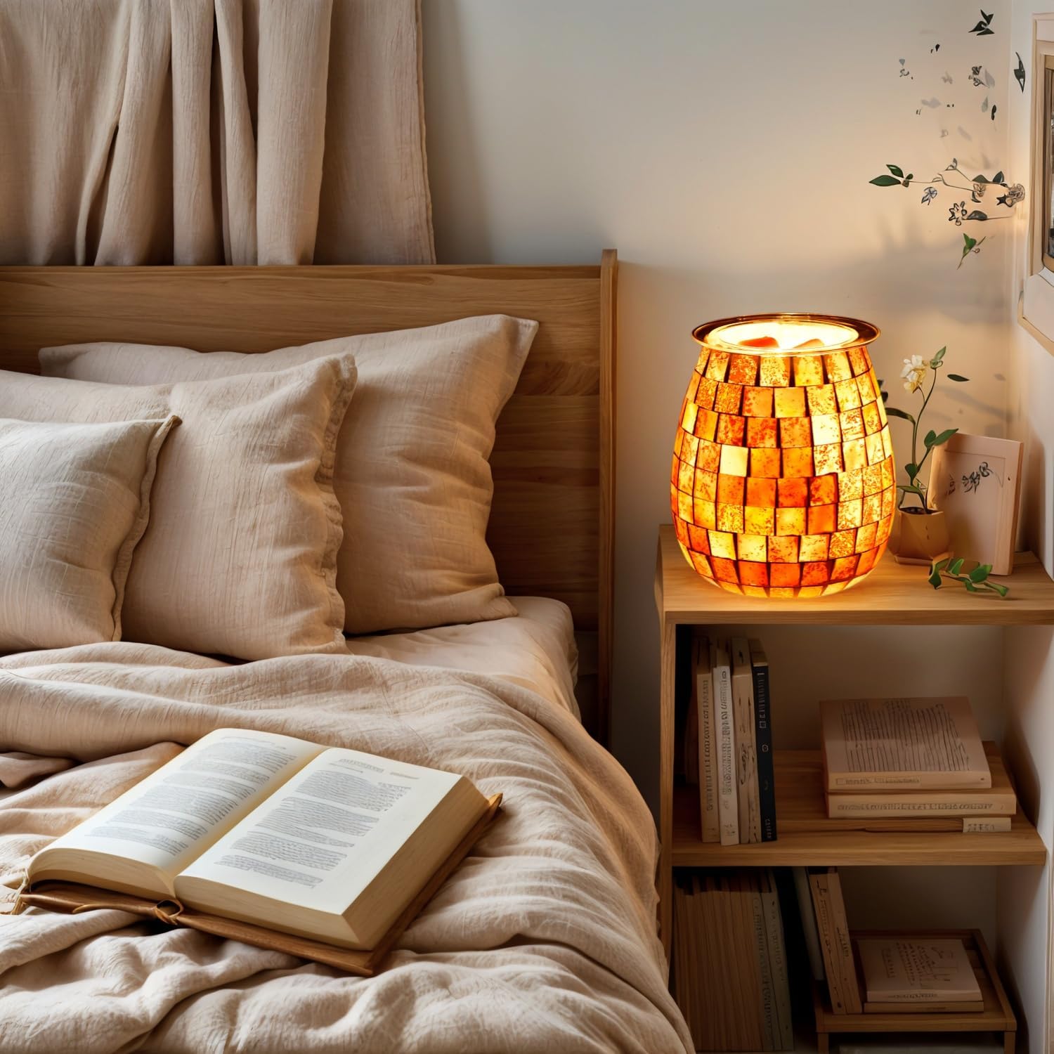 Dicimi Glass Wax melt Heater, Mosaic Electric Fuel Burner, Candle Wax melt Romantic Fragrance Heater Essential Oil Burner, Suitable for Gifts, Home Decoration(Platinum Cube)