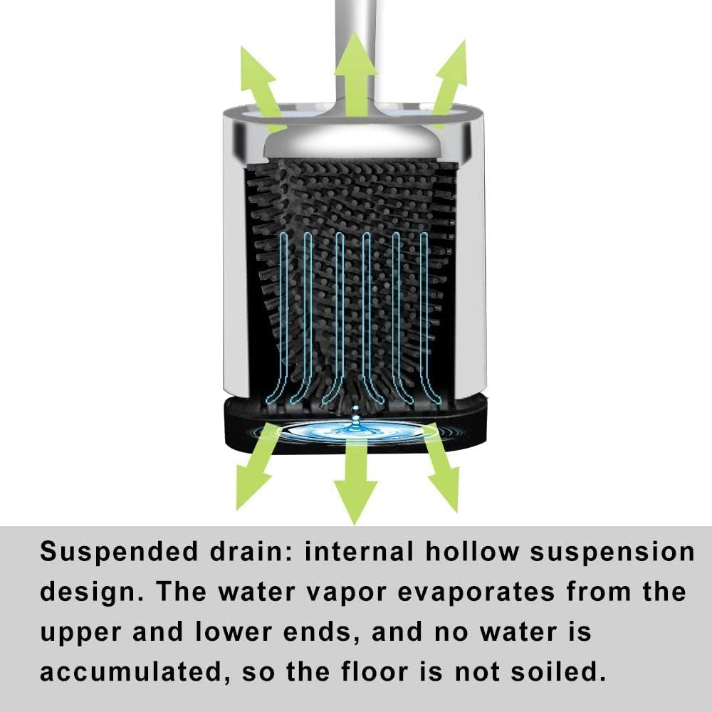 - Easily Clean Dead Corner: The flat silicone toilet brush head can be bent to fit the angle of the rim, reaching under the rim. The tip of the brush head is designed to clean the edge of the toilet bowl better by bending the brush head upward
