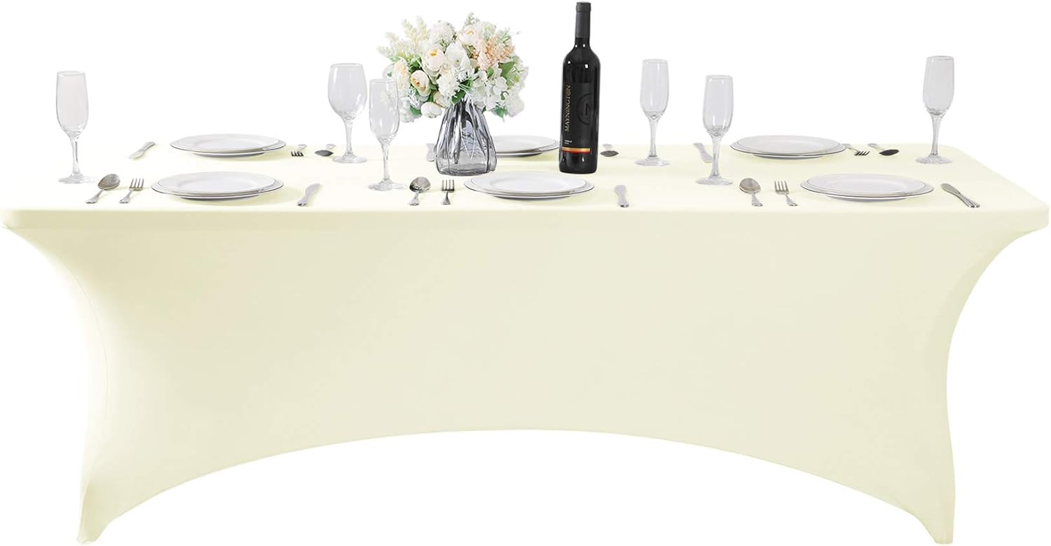 SuperO 2Pack Waterproof Spandex Table Cover for 8FT Table Universal Fitted Stretch Tablecloth for Party, Banquet, Wedding and Events-Ivory