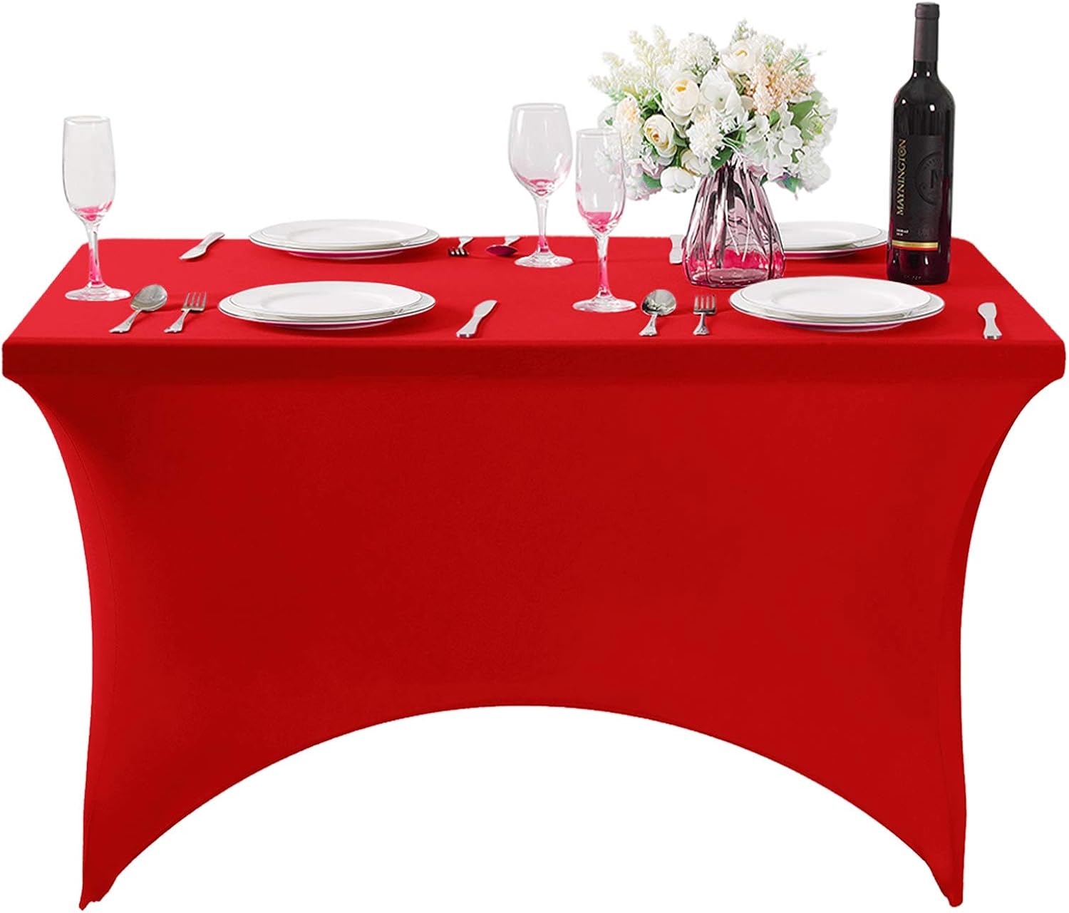 SuperO 2Pack Waterproof Spandex Table Cover for 4FT Table Universal Fitted Stretch Tablecloth for Party, Banquet, Wedding and Events-Red