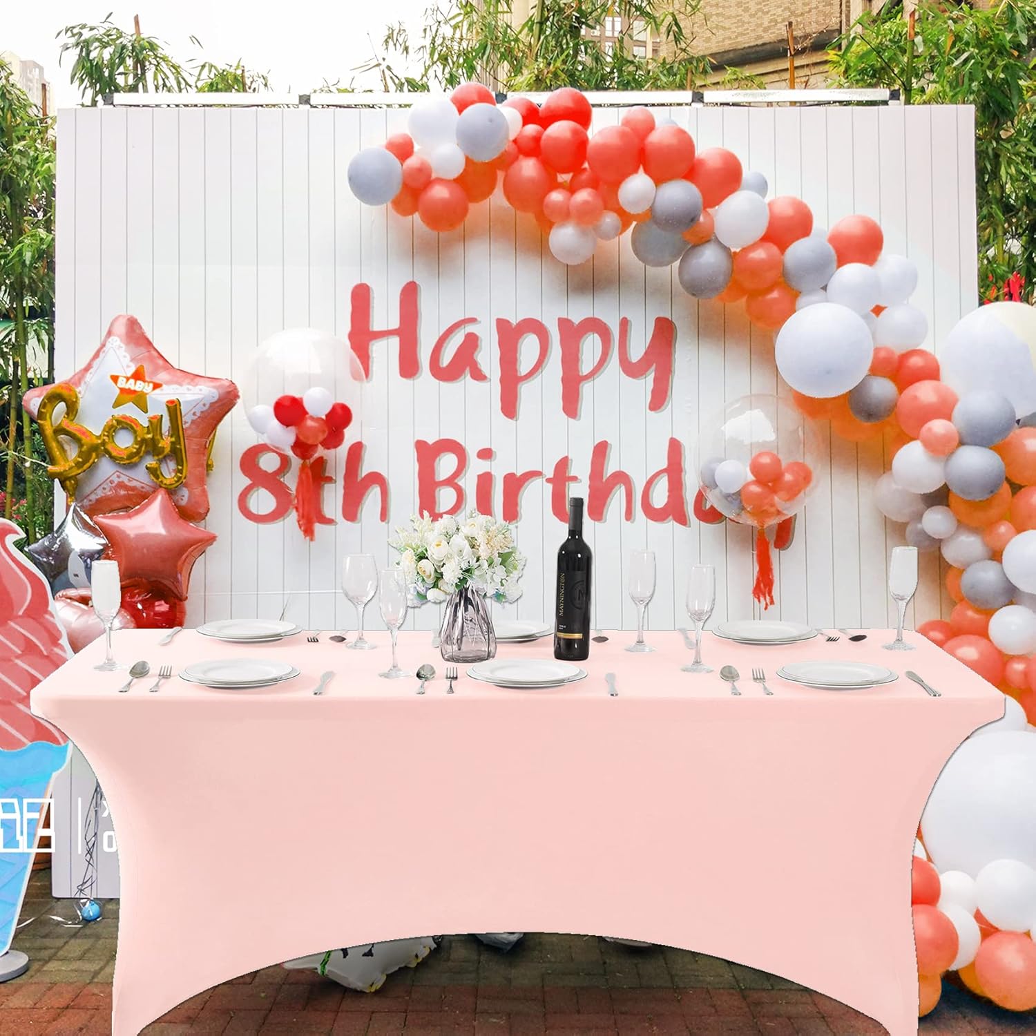 SuperO 2Pack Waterproof Spandex Table Cover for 6FT Table Universal Fitted Stretch Tablecloth for Party, Banquet, Wedding and Events-Blush Pink