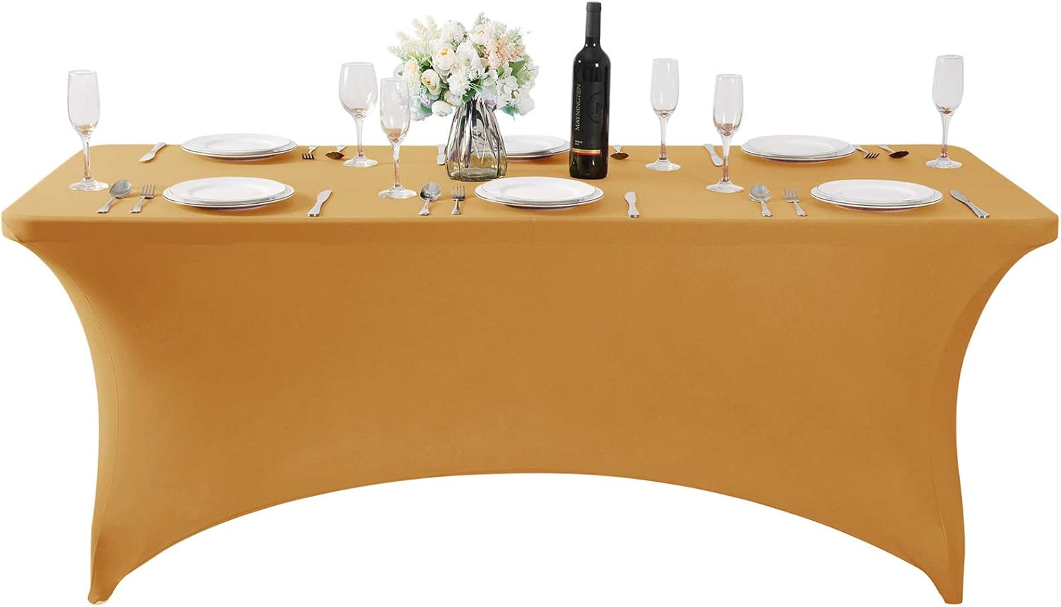 SuperO 2Pack Waterproof Spandex Table Cover for 6FT Table Universal Fitted Stretch Tablecloth for Party, Banquet, Wedding and Events-Gold
