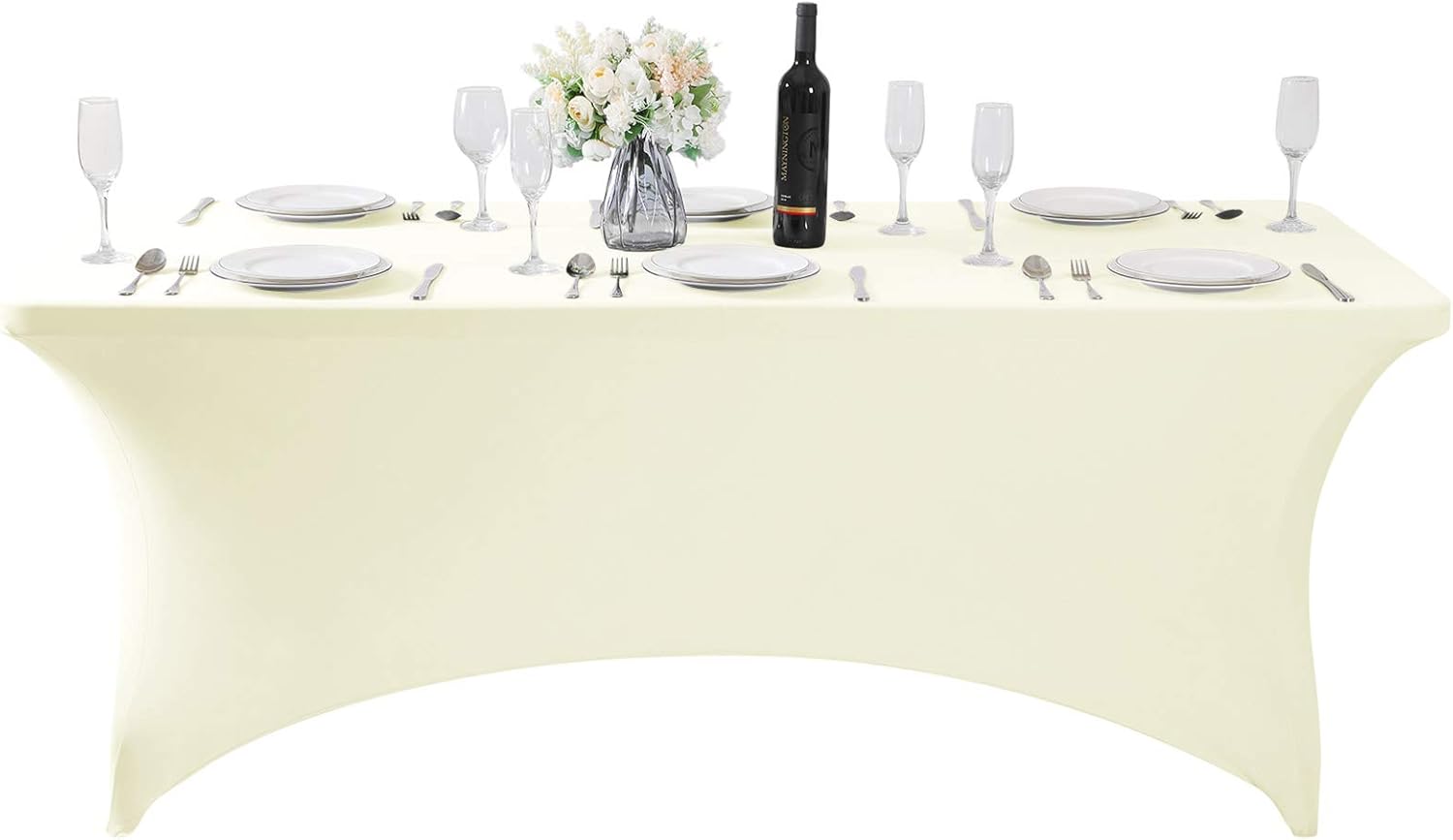 SuperO 2Pack Waterproof Spandex Table Cover for 6FT Table Universal Fitted Stretch Tablecloth for Party, Banquet, Wedding and Events-Ivory