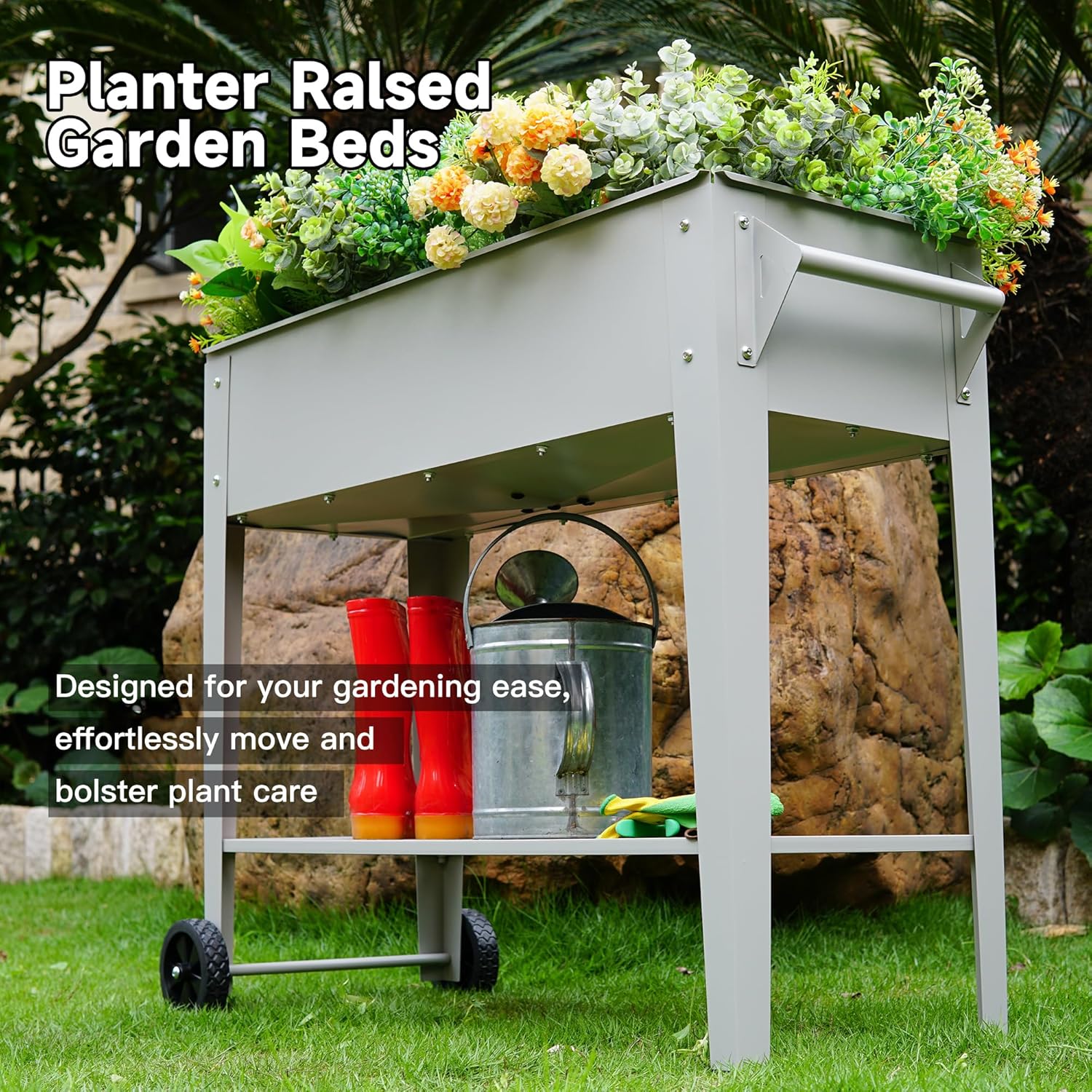 ๐๐๐ข๐ฌ๐๐ ๐๐๐ซ๐๐๐ง ๐๐๐ ๐๐ฎ๐ญ๐๐จ๐จ๐ซ Elevate Herb Garden Planter Box Outdoor Raised Planter Box with Legs On Wheels for Vegetables Flower Tomato Patio Backyard