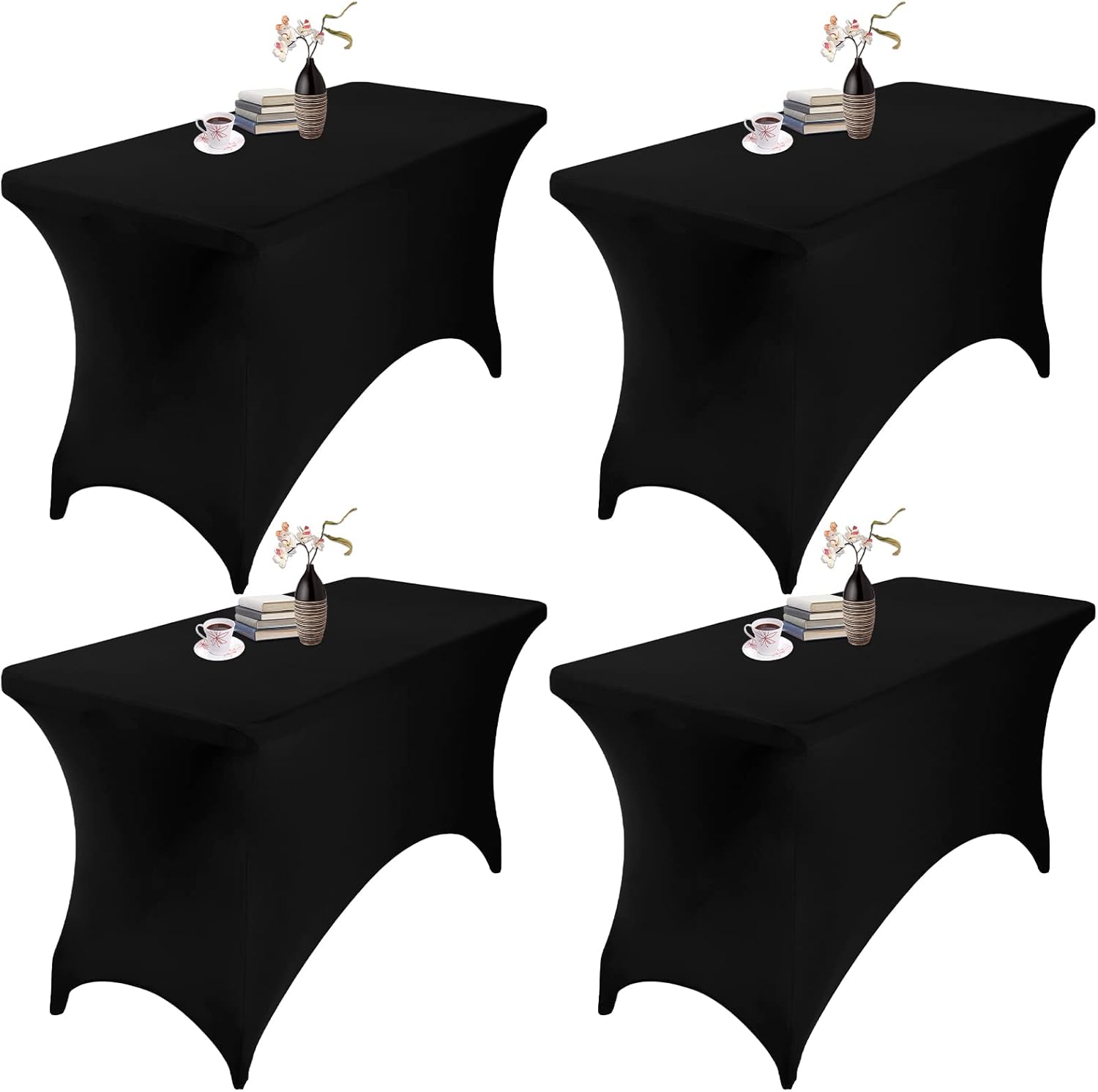 4Pack Spandex Waterproof Table Covers 4ft,Spandex 4ft Waterproof Table Cover for Party,Wedding, Banquet, and Events(Black)