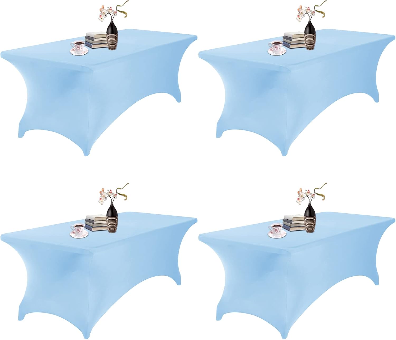 4Pack Spandex Waterproof Table Covers 8ft,Spandex 8ft Waterproof Table Cover for Party,Wedding, Banquet, and Events(Blue Mist)