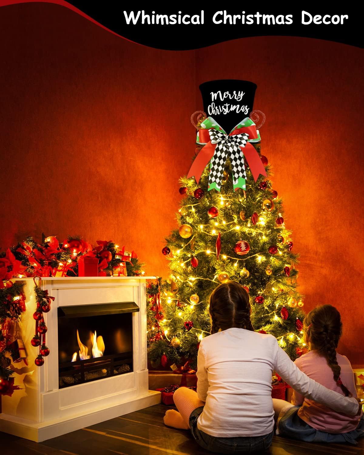 - Fit for Most Christmas Tree:The hat is approx 9 inches wide and 16 inches tall with the bows. The size of the black hat is not only suitable for many sizes of Christmas trees but its style and elements of the whole design are also suitable for multifarious themed Christmas trees.