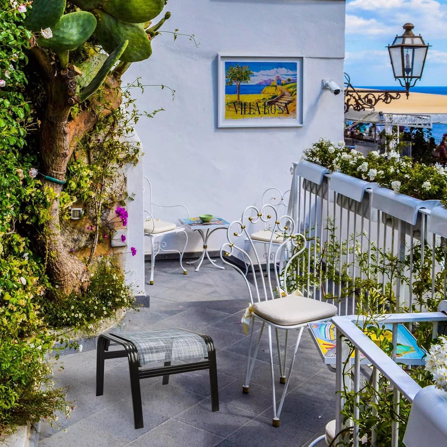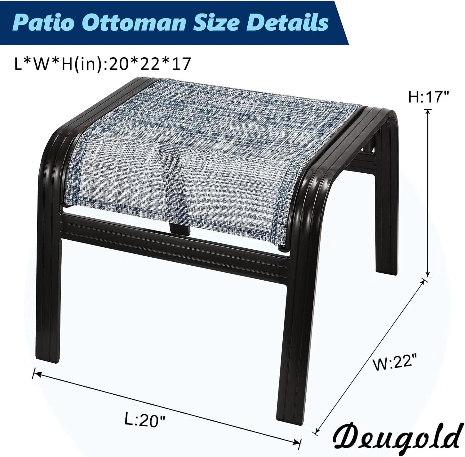 Outdoor Footstools for Patio,Textile Ottomans Metal Dining Footrests Stack Chairs for Lawn,Garden or Porch 2 Set Blue