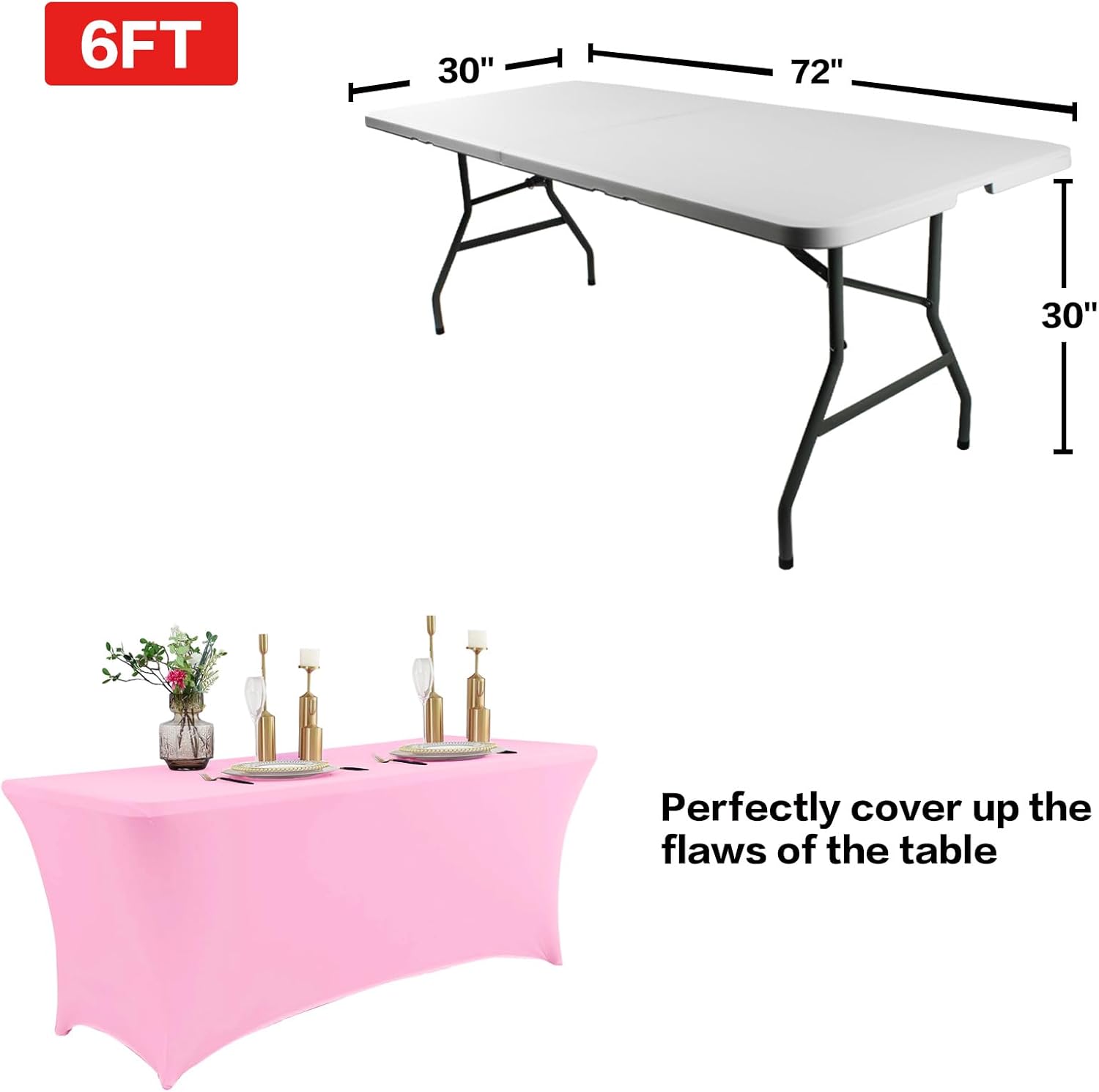IVAPUPU 6FT Table Cloth for Rectangular Fitted Events Stretch Pink Table Covers Washable Cover Spandex Tablecloth Protector for Party, Wedding, Cocktail, Banquet, Festival