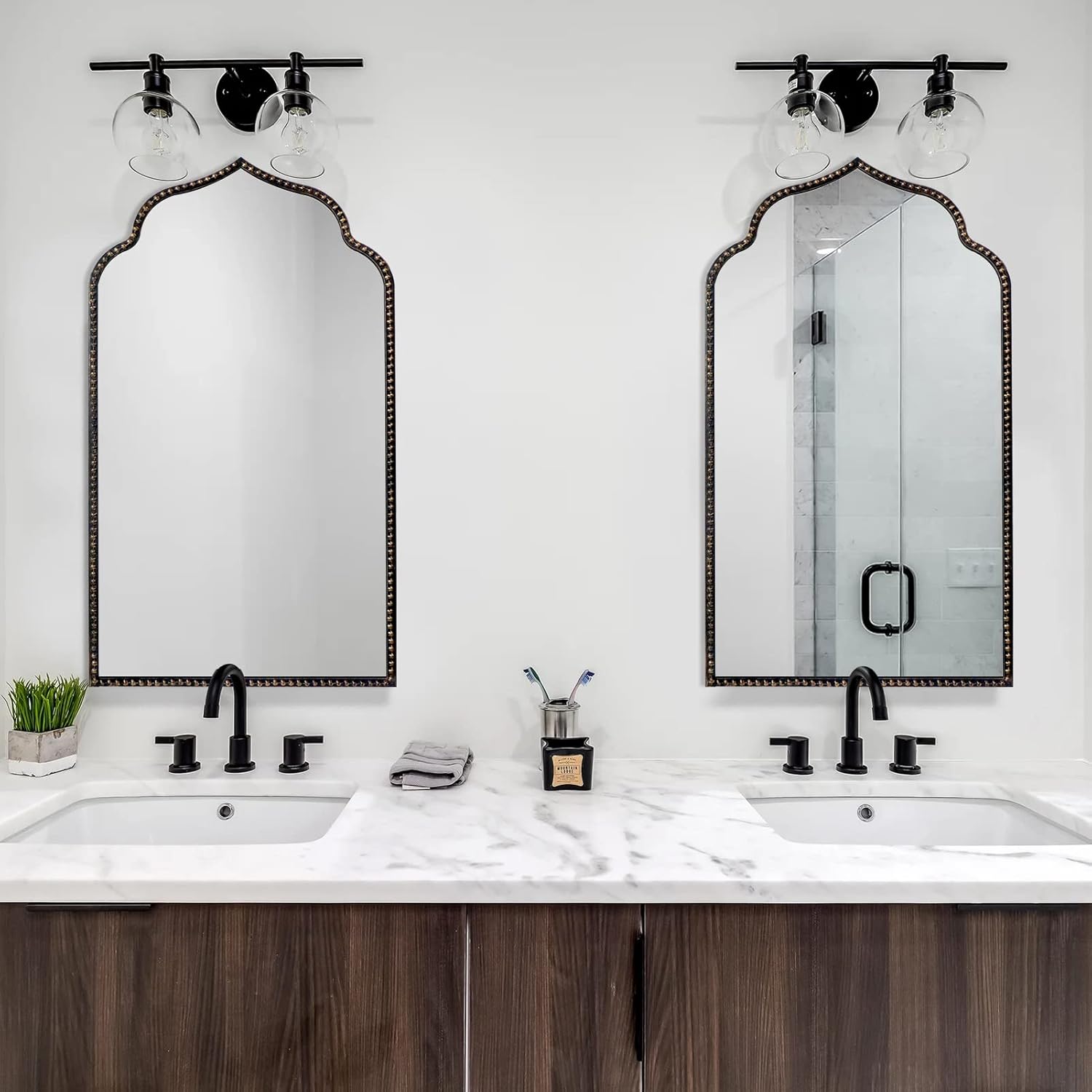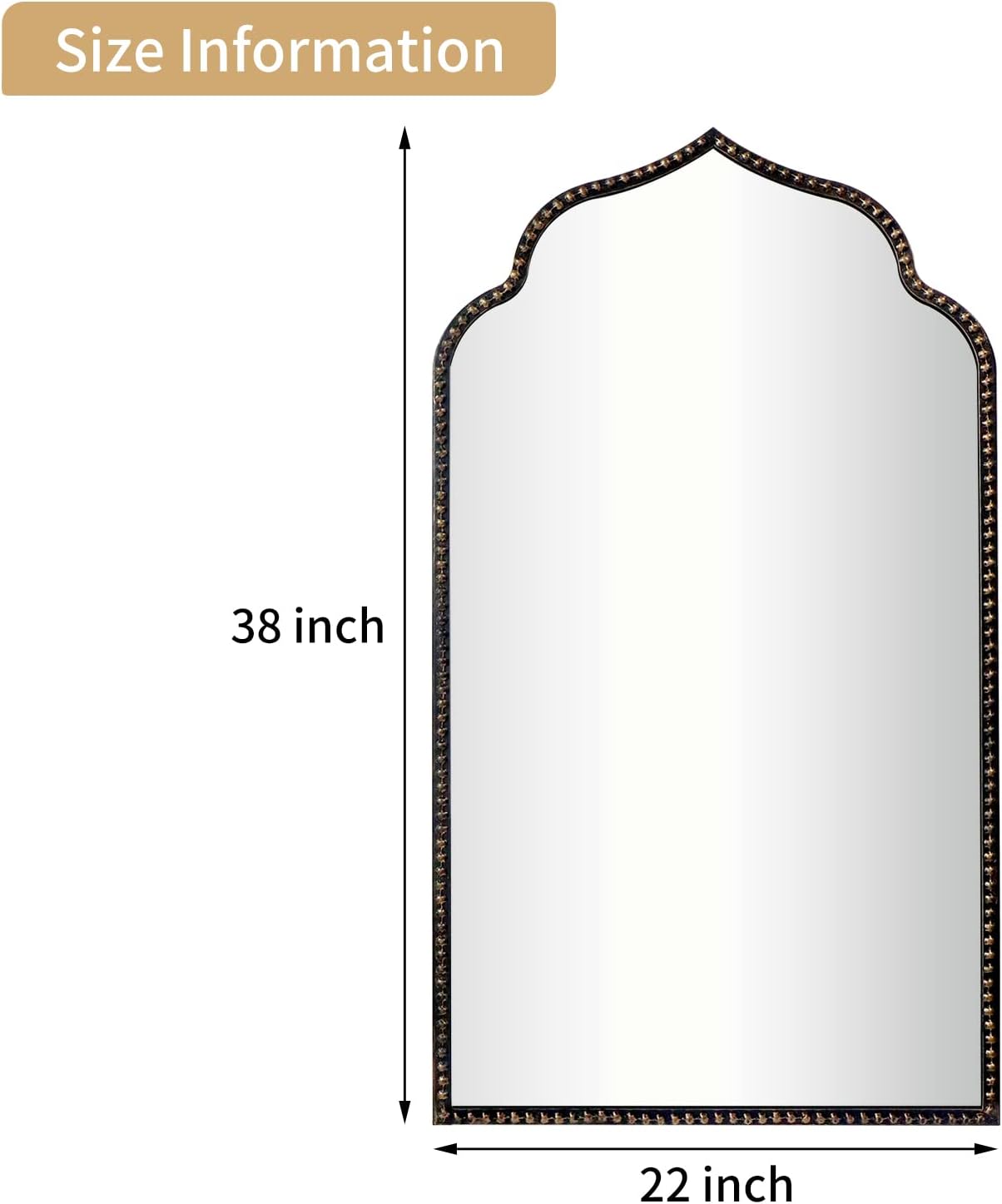 Arch Wall Mirror, 22" W x 38" H Marlowe Mirror, Metal Beaded Frame Large Modern Mirror,Antique Black