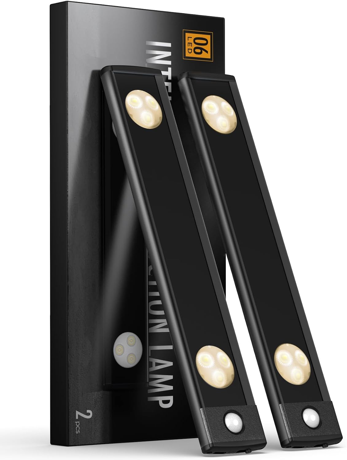 Under Cabinet Lights, Wireless Motion Sensor Light Indoor, Black 10in LED warm Lighting Rechargeable Battery Operated,4 Modes Night Light, Stick-On Magnetic Closet Lights for Kitchen, Hallway(2 Pack)