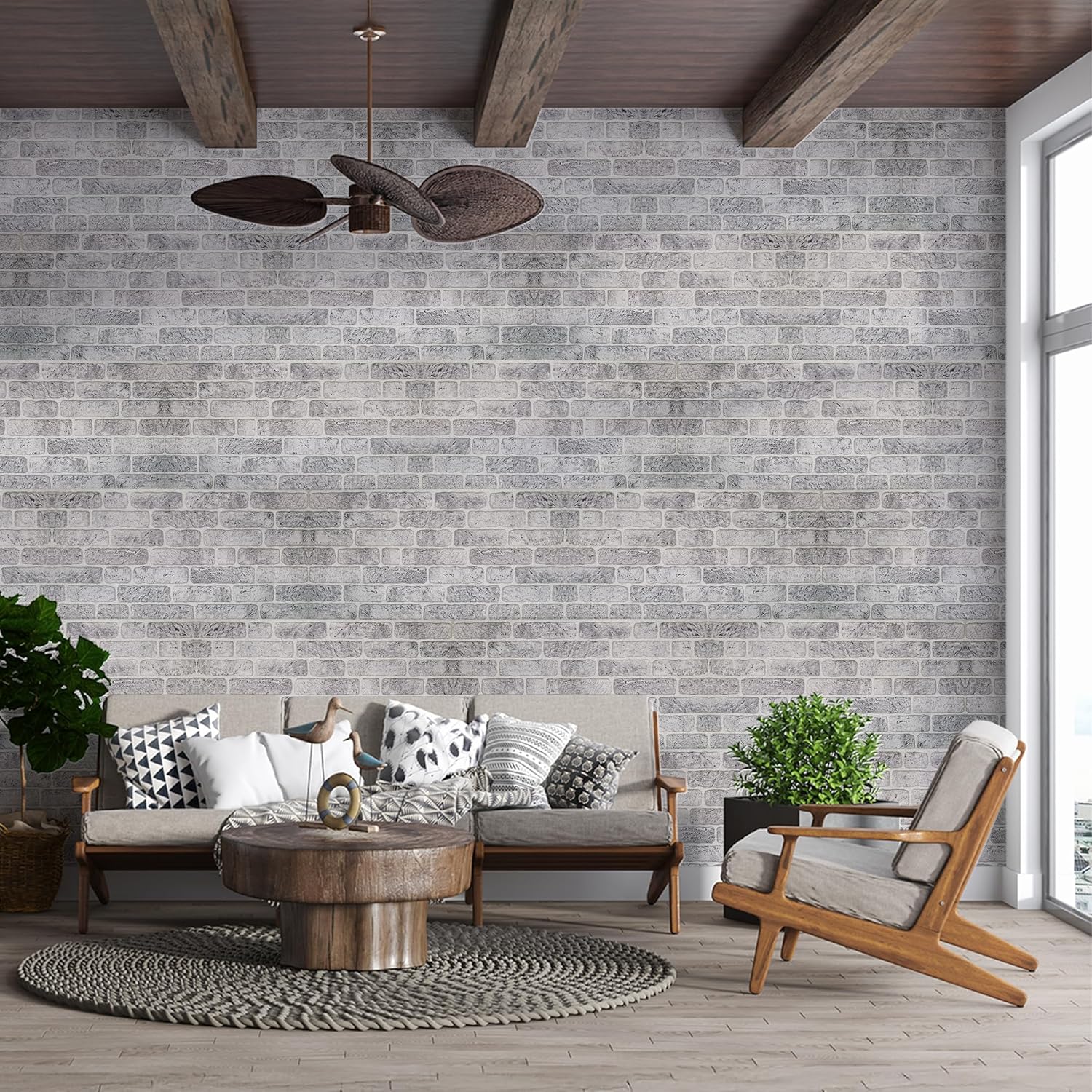 IZODEKOR 3D Wall Panels Brick Effect - Cladding, Stone Look, Styrofoam Facing for Living Room, Kitchen, Bathroom, Balcony, Bedroom and Back of Counter | White Grey (3 Piece Panel) | Covers 16 sq ft