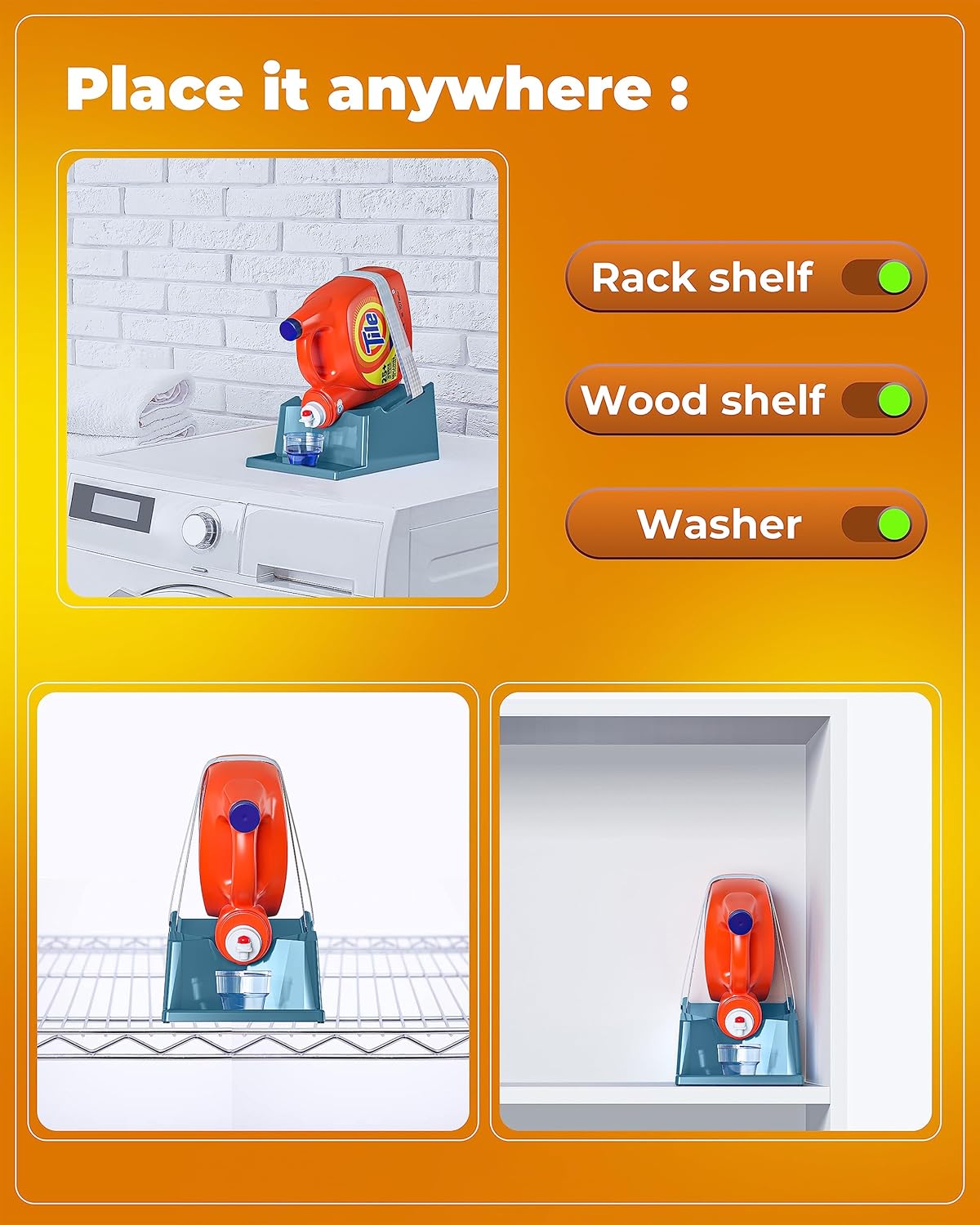 - [No More Lifting, Just Easy Pouring]: Skip the struggle of lifting and tilting heavy containers. Our liquid laundry detergent stand for laundry features a downward-angled platform that lets gravity do the work, delivering smooth, effortless soap flow with zero hassle.