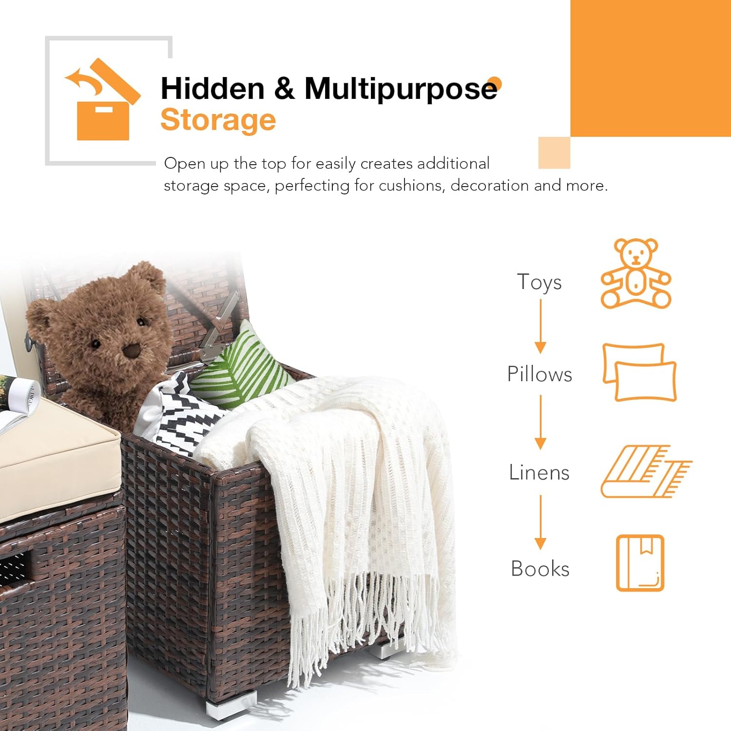 - Spacious Storage: Hinged lid opens to reveal a large storage compartment.