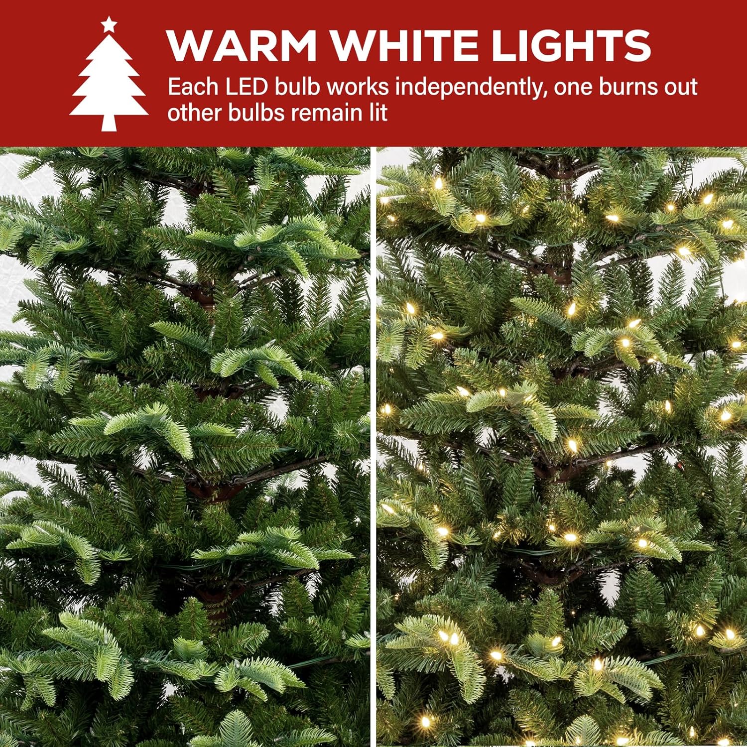- NATURAL & FULL LOOK: The 7.5 ft artificial Christmas tree boasts 1173 PE &PVC branch tips for a full look. Pre-strung with 450 warm white LED lights with the touch of a button, add a fantastic festive atmosphere to your home. The tree also provides abundant space to showcase your favorite holiday ornaments.