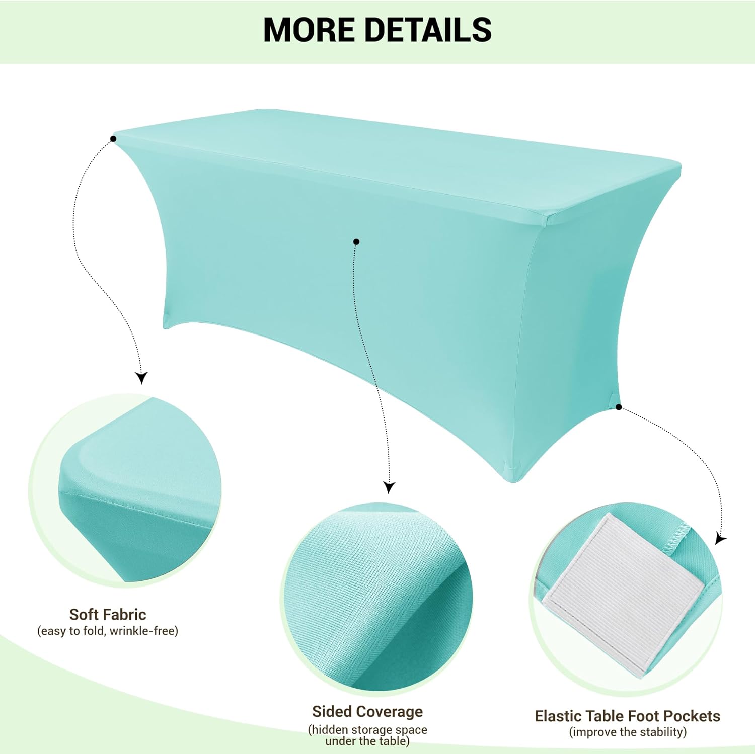 Obstal 6ft Stretch Spandex Table Cover for Standard Folding Tables - Universal Rectangular Fitted Tablecloth Protector for Wedding, Banquet and Party, 72L x 30W x 30H Inches, Blue, 2pc