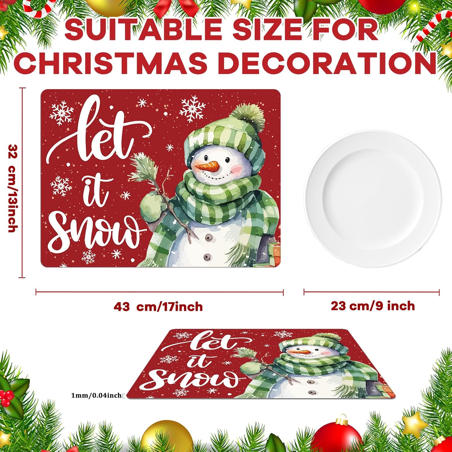 - 【Effortless Cleaning】Our Christmas plastic table mats are designed for easy cleaning, making them the perfect choice for your dining table. Snowman placemats can be effortlessly wiped clean with just a damp cloth. This not only saves you time but also ensures a hassle-free cleanup after your Christmas party.