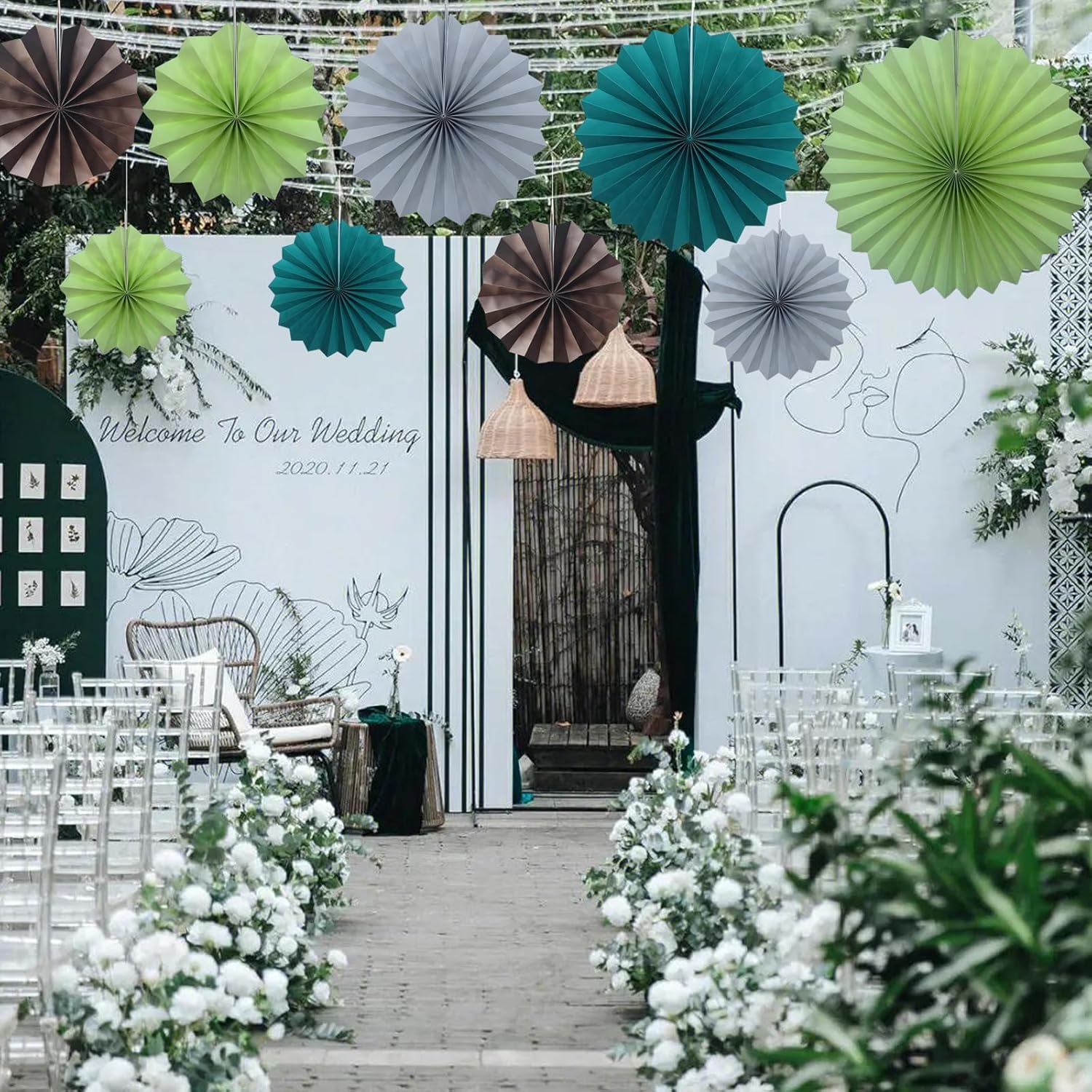 Coffee Party Decorations,Coffee Birthday Decorations,Party Events Accessories,Coffee Themed Party Decorations,Coffee Party,Friends Themed Party 8in Hanging Paper Fans 30 Color DIY Set(Coffee))
