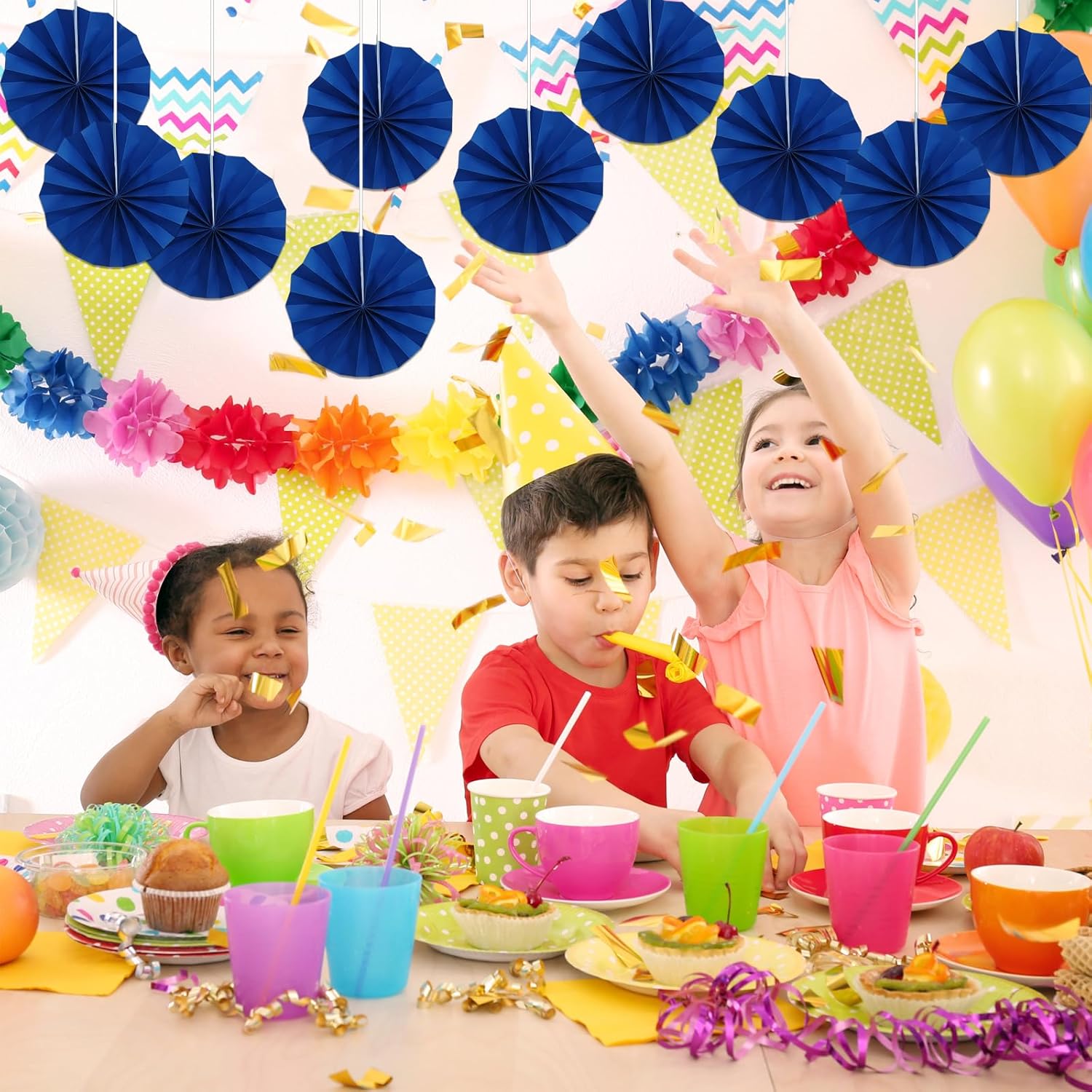 Blue Birthday Decorations,DIY Blue Paper Fans Hanging Decoration ,Party Decorations for Adults 8in, Royal Blue Birthday Decorations,Baby Shower Decorations 30 Color DIY Set (Navy Blue)