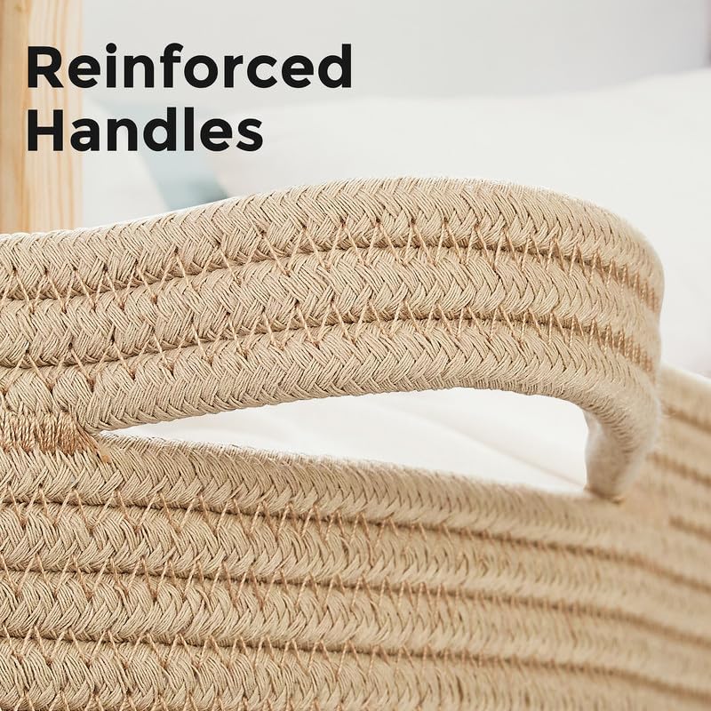 - Sturdy and Long-lasting: The Ravinte blanket basket features reinforced handles for easy movement and versatile use in various spaces. Handmade from resilient cotton rope, this robust basket provides reliable storage and will last for years of continuous use