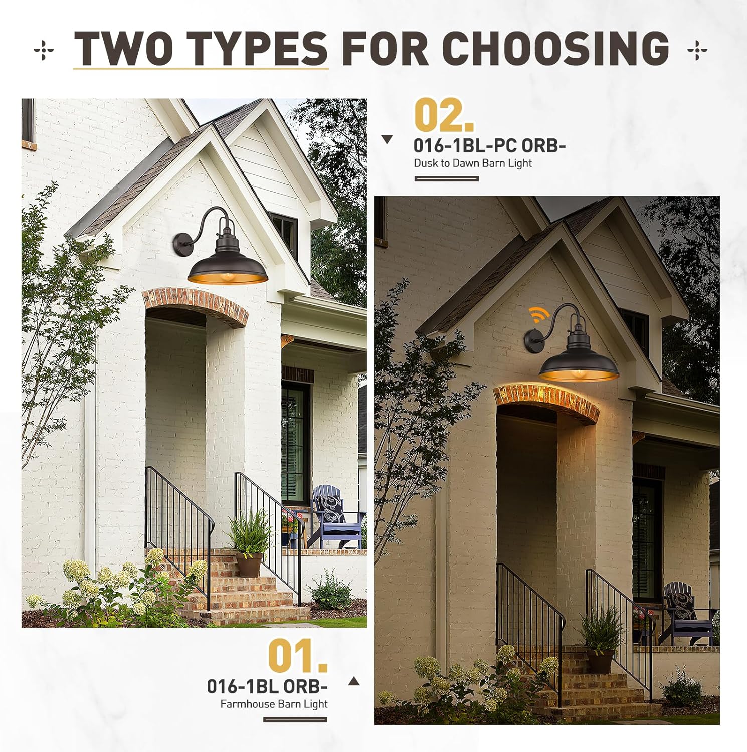 - 【GOOSENECK DESIGN & WEATHER RESISTANCE】Featuring a durable metal dome shade and elegant gooseneck arm design, this exterior large barn light is made of sturdy metal construction in an oil rubbed bronze finish with a gold interior. Waterproof and anti-rust, it was durable while adding a unique atmosphere to your house.