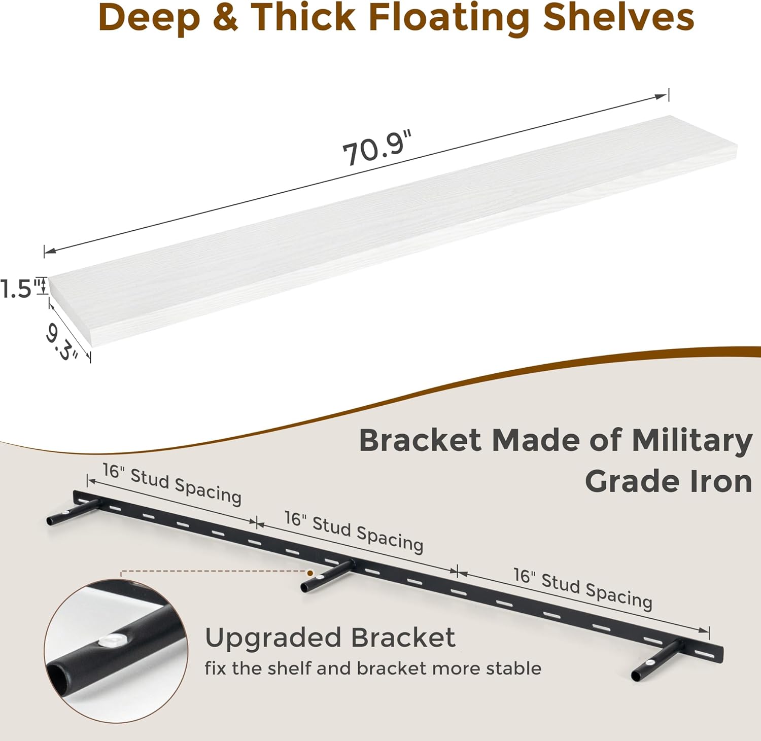 - Special Feature : 1.5 Inch Thick, 9.3 Inch Deep, Heavy Duty, Invisible Bracket, Storage Shelves