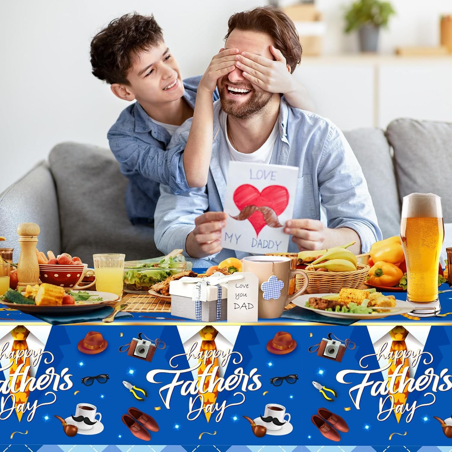 - 👨【Premium Quality And Easy To Clean】- These happy father day table cloths are made of carefully selected, quality-tested plastic material, which is durable, smooth, odorless, waterproof, oilproof, and easy to clean. Without worrying about wondering how to clean up the mess, just toss them away or simply wipe down. They're not only the table decorations for fathers day themed parties, but also the protectors for your tables and furnitures.