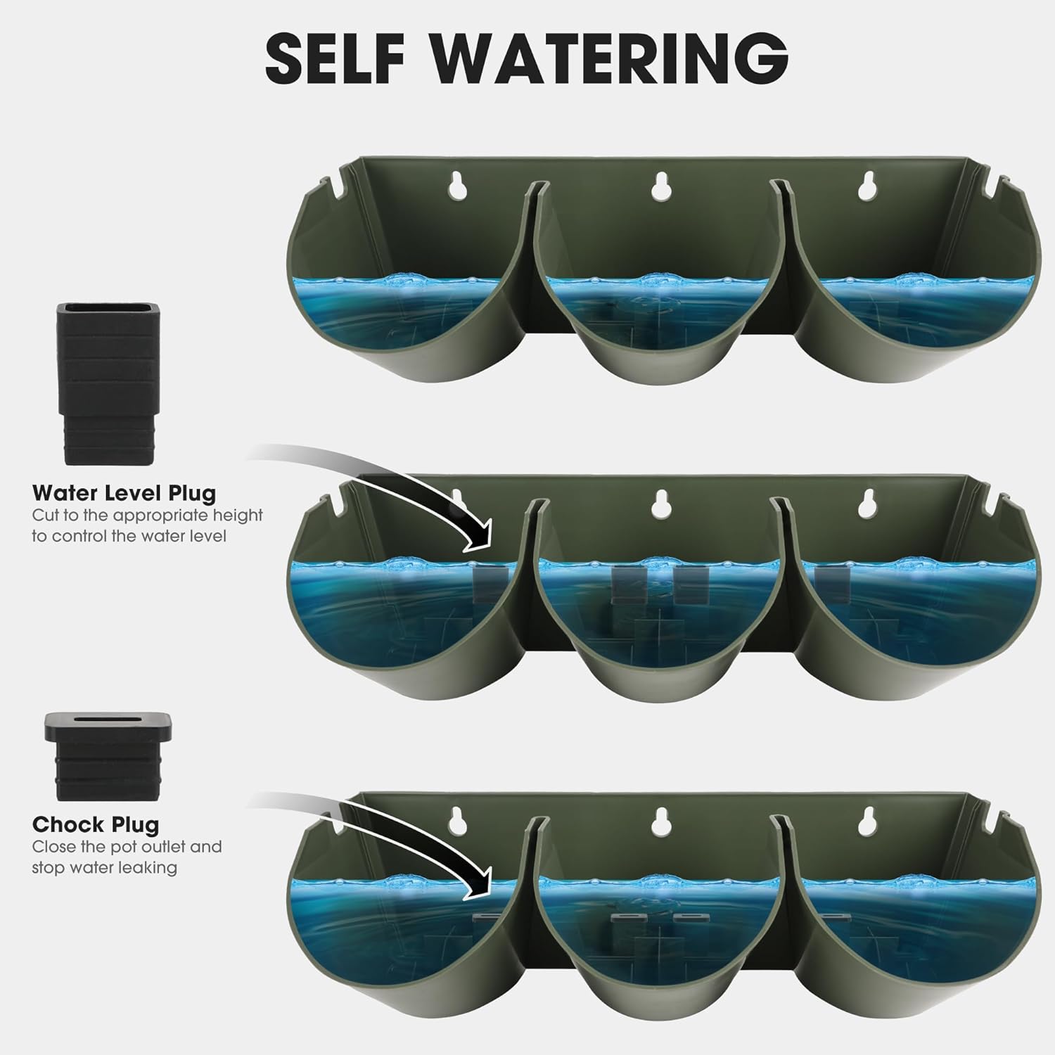 - INCLUDES 12 MODULAR WALL PLANTERS: Weโve included 12 3-pocket planters within our wall mounted hanging planter for you to create layers of potted plants for your vertical garden; Use a few wall hanging planter in one area or use them all; You can even add more layers to your vertical garden by purchasing additional compatible vertical garden pots; 12x 3-pocket planters make up 6.4ftยฒ, total of 36 plants required