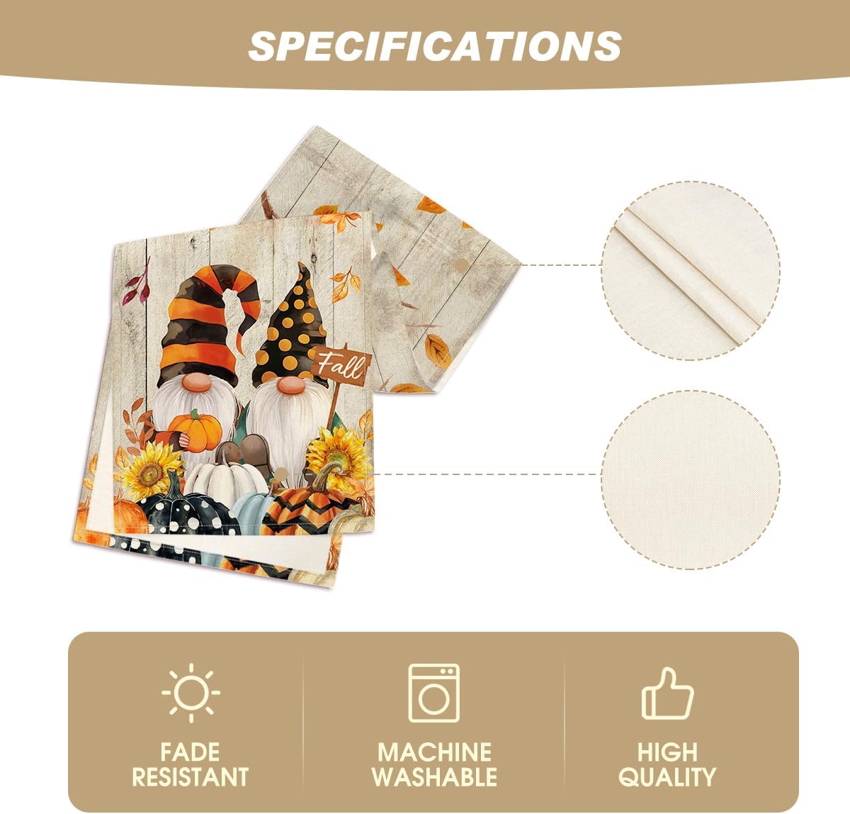 Artoid Mode Wood Gnomes Pumpkins Sunflower Maple Leaves Fall Table Runner, Kitchen Dining Table Decoration for Home Party Decor 13 x 108 Inch