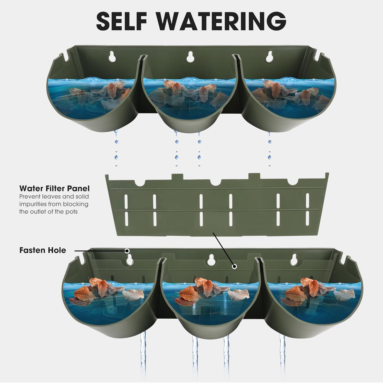 - INCLUDES 6 MODULAR WALL PLANTERS: Weโve included 6 3-pocket planters within our wall mounted hanging planter for you to create layers of potted plants for your vertical garden; Use a few wall hanging planter in one area or use them all; You can even add more layers to your vertical garden by purchasing additional compatible vertical garden pots; 6x 3-pocket planters make up 3.2ftยฒ, total of 18 plants required