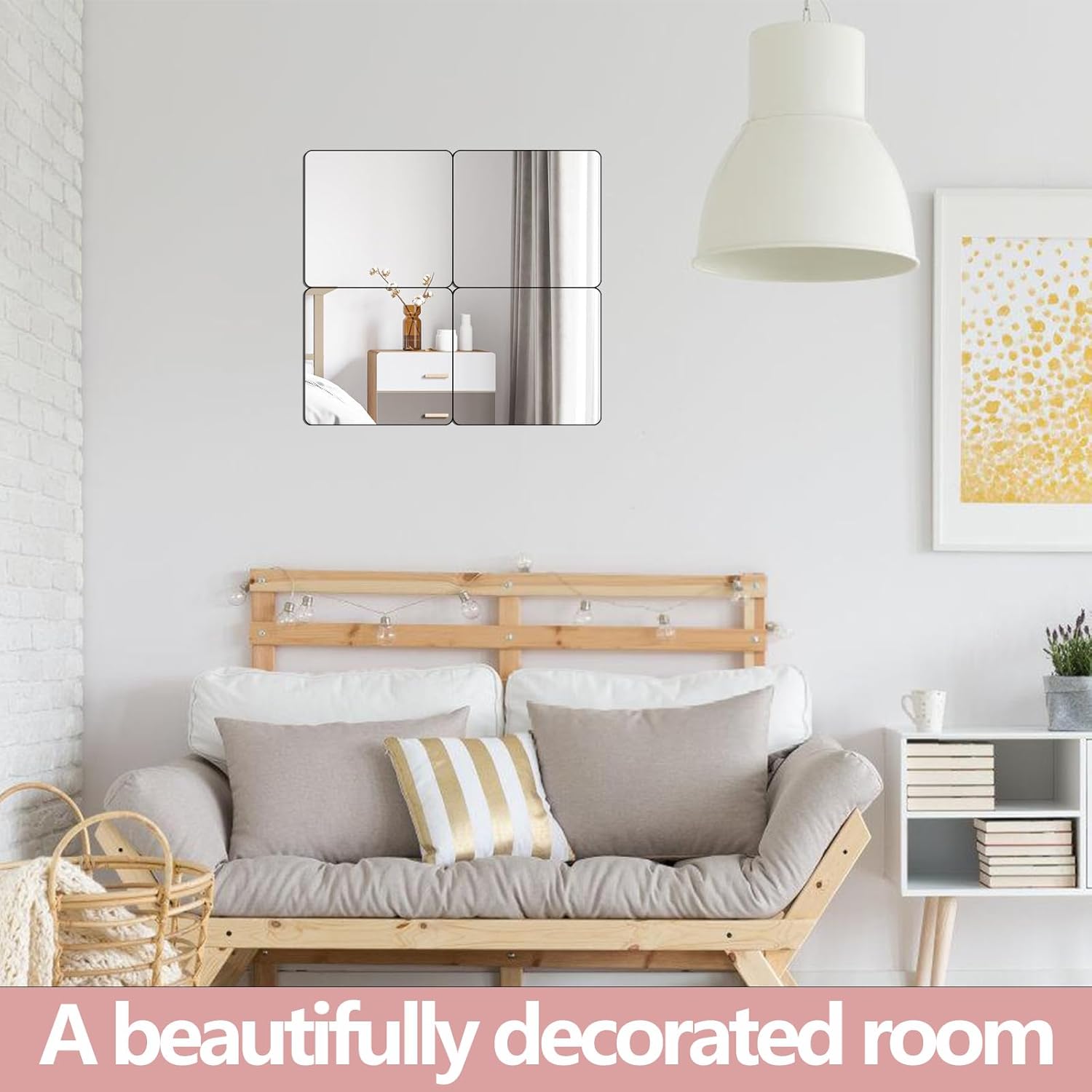 - (High definition): Composed of 4 packages - each 16 inch x 16 inch image is very clear and distortion free, freely combined to decorate one's own room, can also be used as a full body mirror
