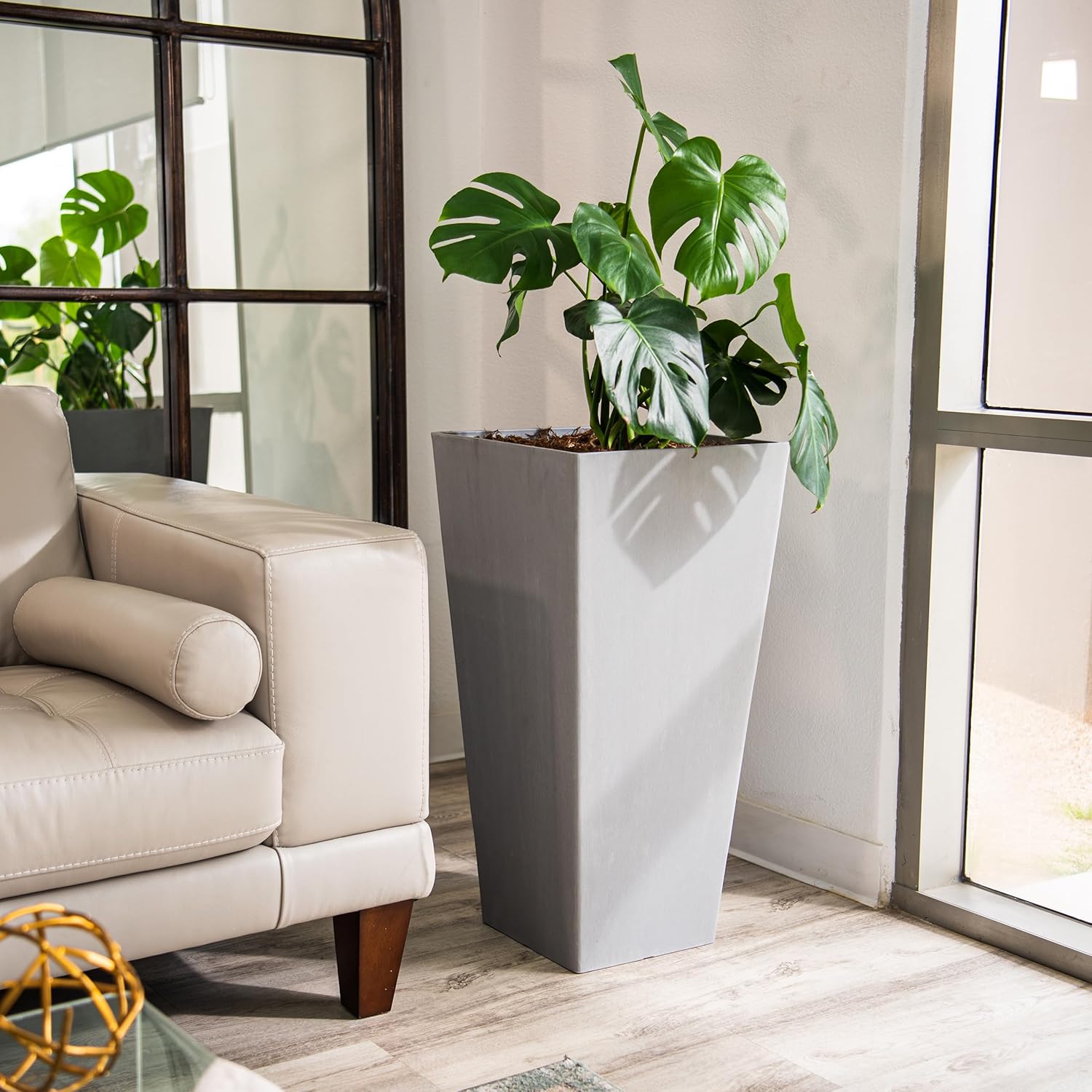 - LARGE AND VERSATILE: The large size of these tapered square planters (measuring 15.2 in. x 15.2 in. wide and 30 in. tall and weight of 20.4 pounds, each), makes this set of two same sized planters ideal for accommodating bigger plants and adding a bold and impressive presence to your indoor or outdoor space.